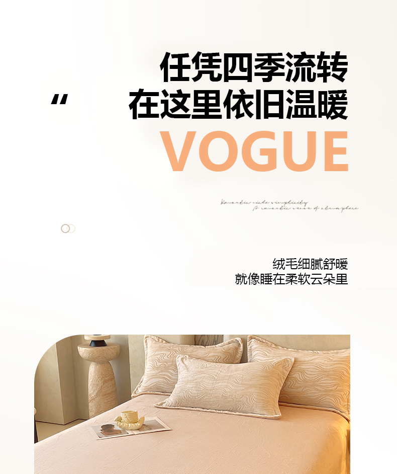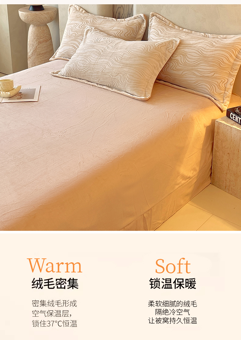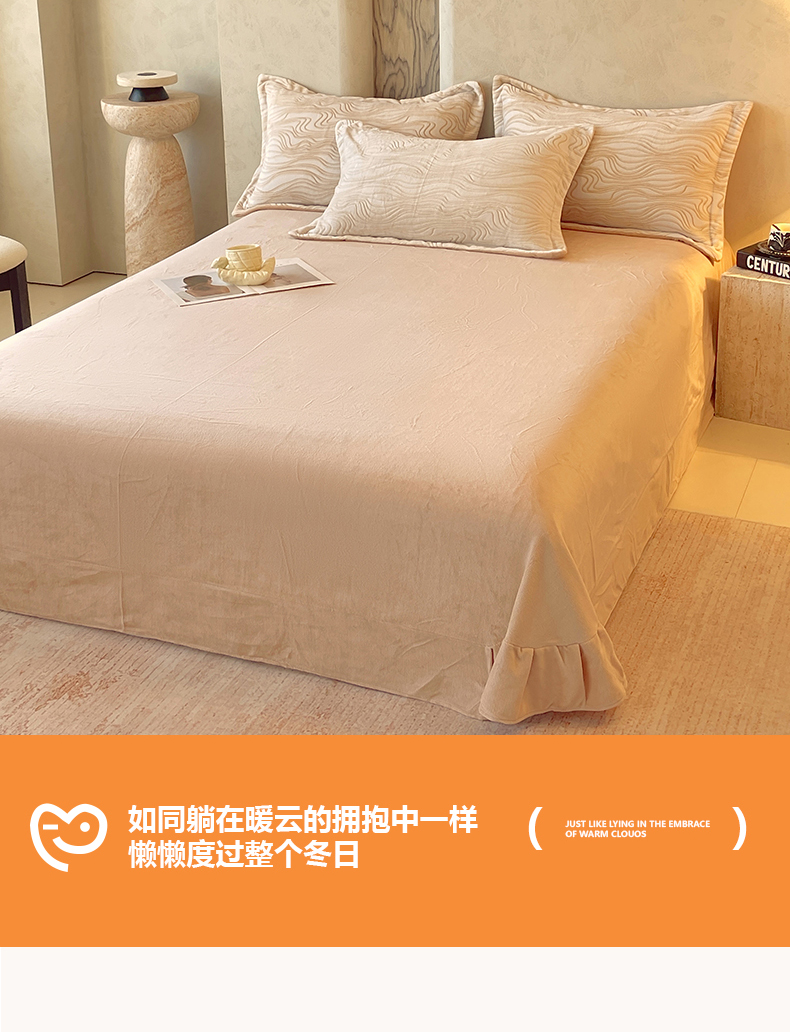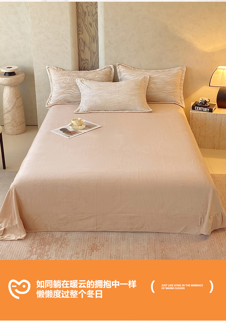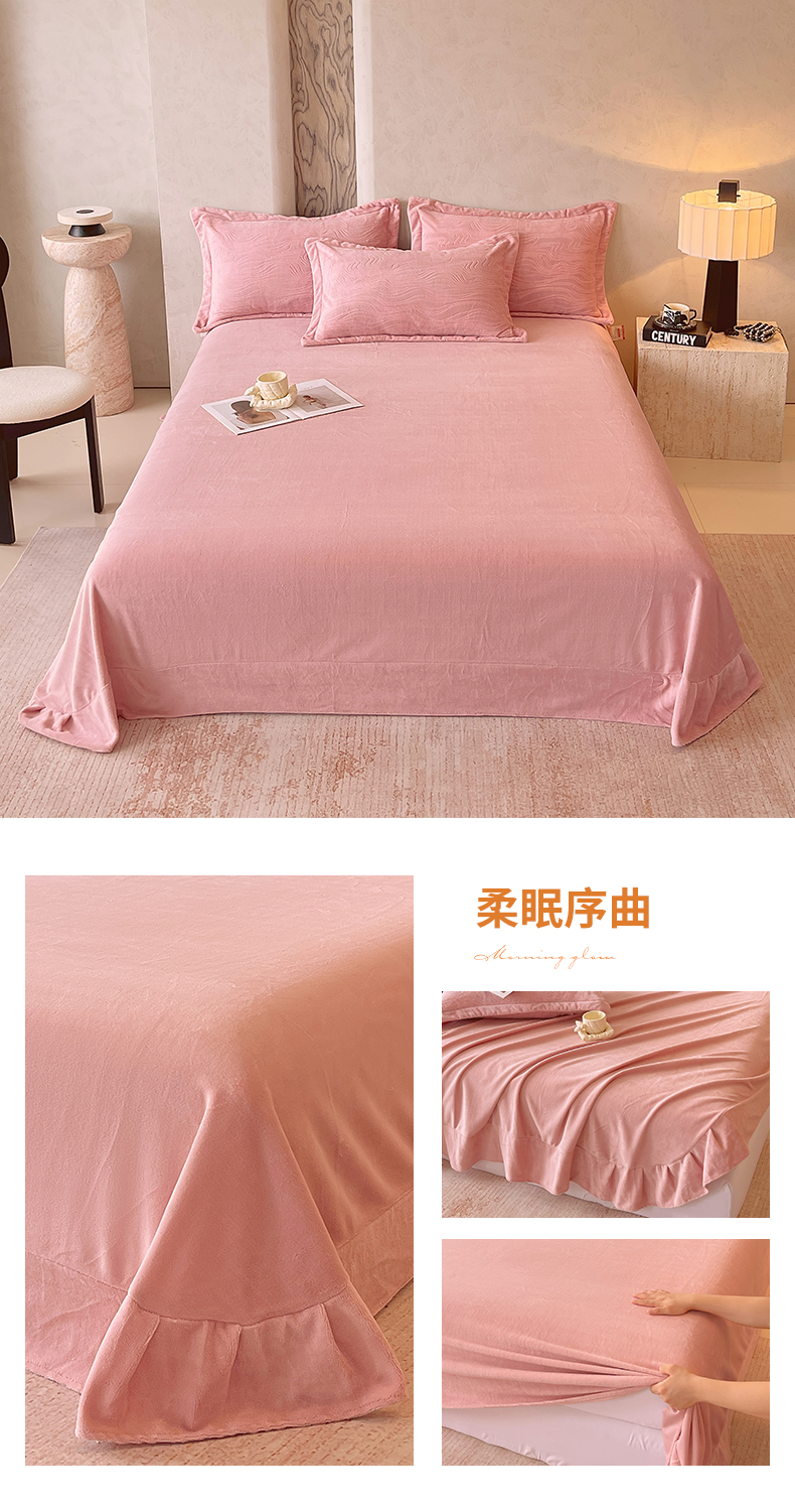 商品名称:春皖家纺 2025新款全消光雕花绒牛奶绒单品床单 晨曦绒光