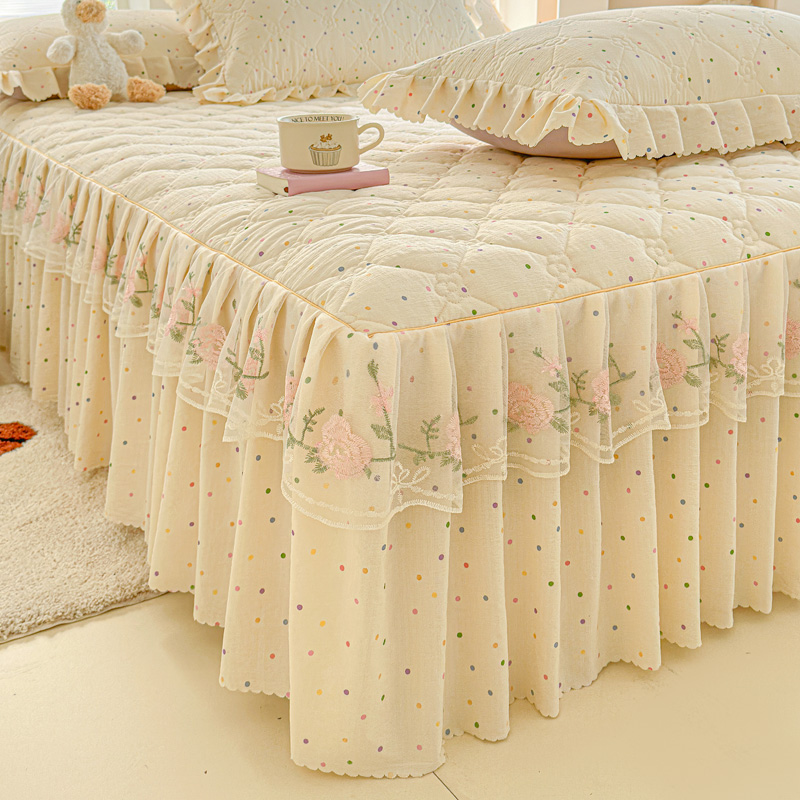 雨田家纺 2025新款夹棉蕾丝单床裙床裙单件 樱花=粉