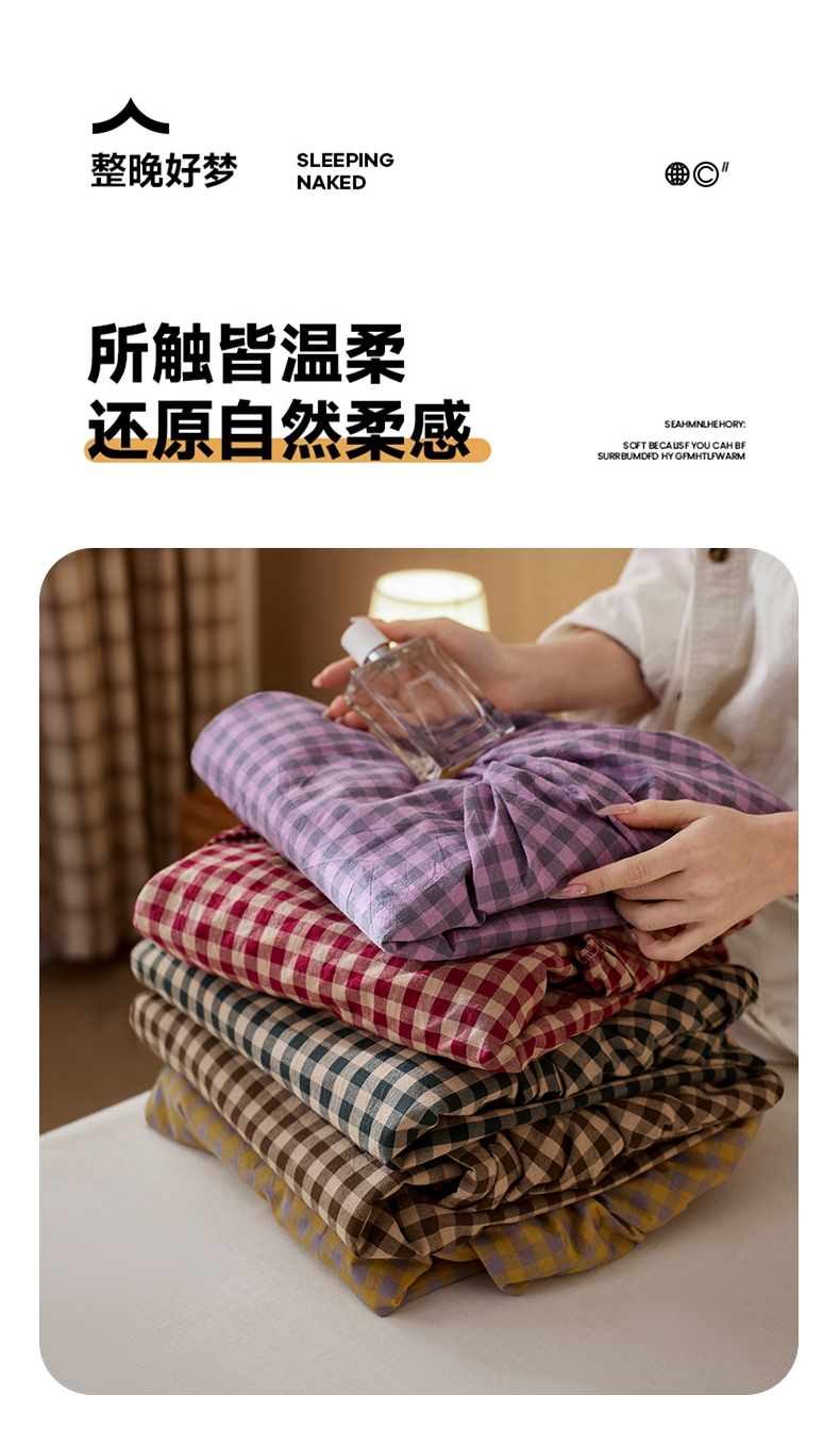 (总)启程家纺 2026新款纯棉水洗棉复古小格多规格系列四件套,复古小格-黑,复古小格-红,复古小格-黄,复古小格-咖,复古小格-紫