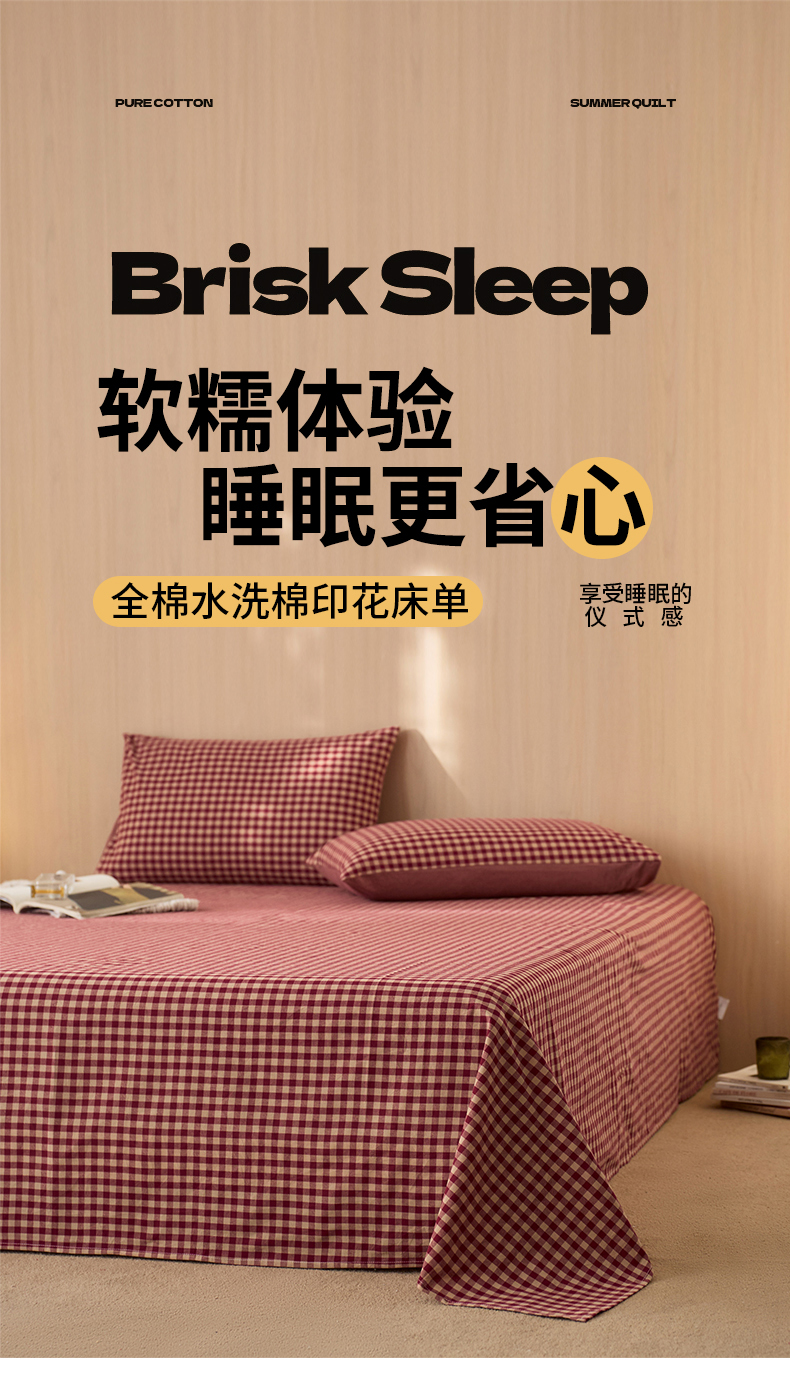 商品名称:(总)启程家纺 2026新款纯棉水洗棉复古小格多规格系列单品床单