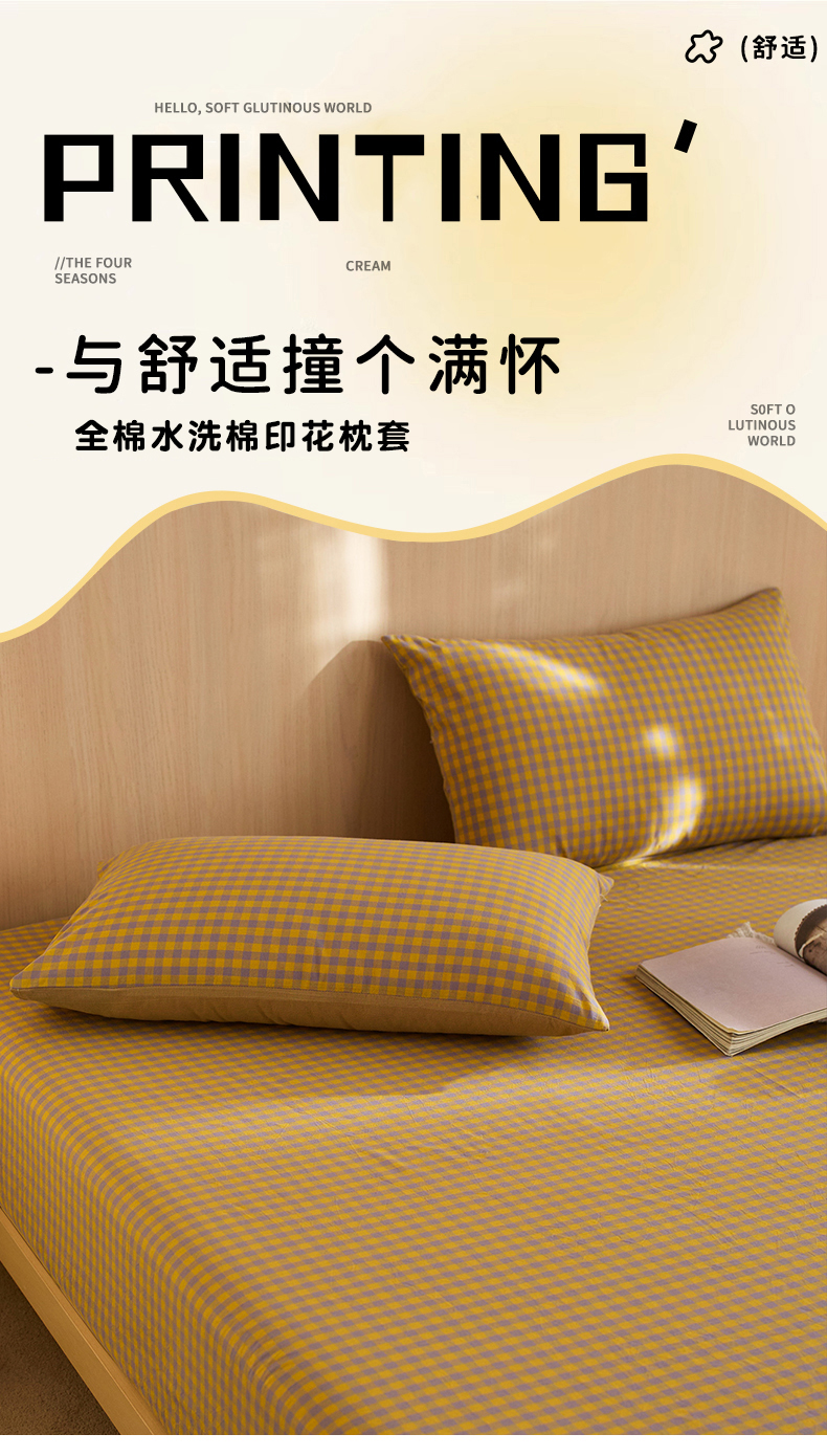 商品名称:(总)启程家纺 2026新款纯棉水洗棉复古小格多规格系列单品枕套