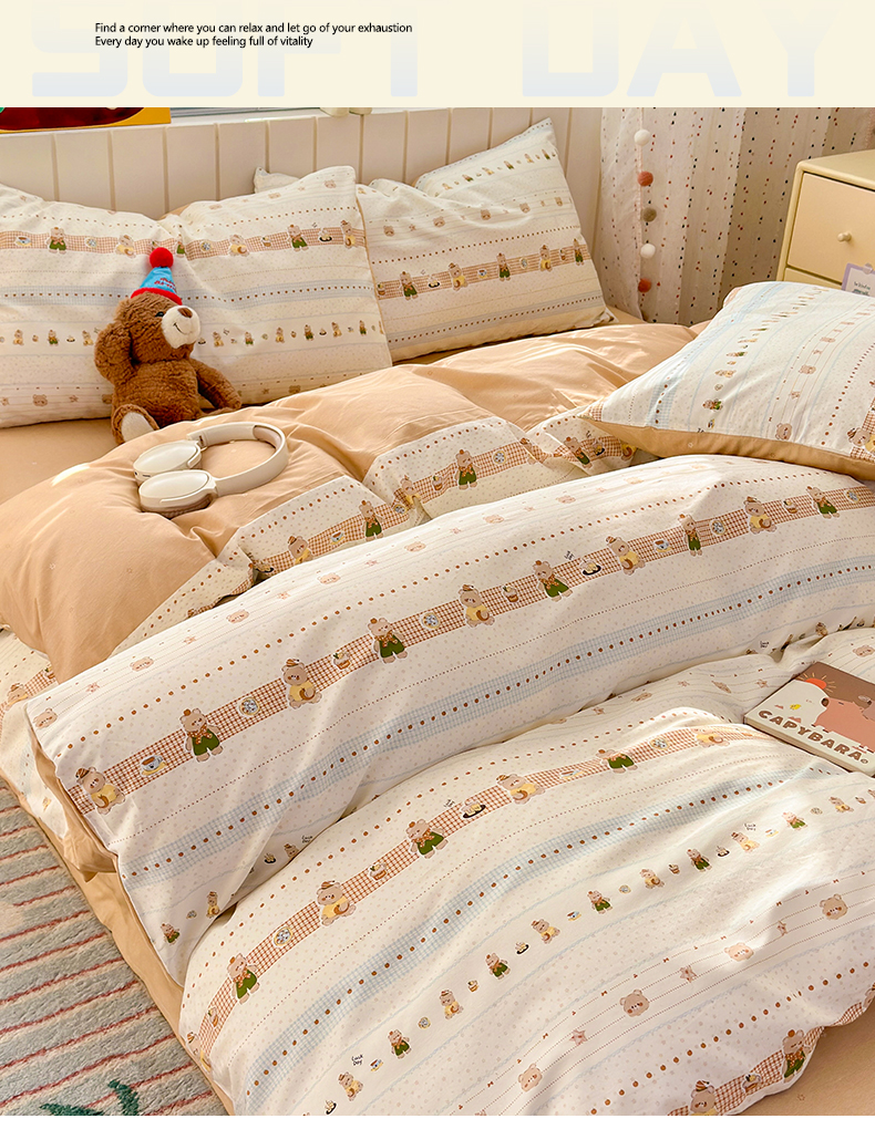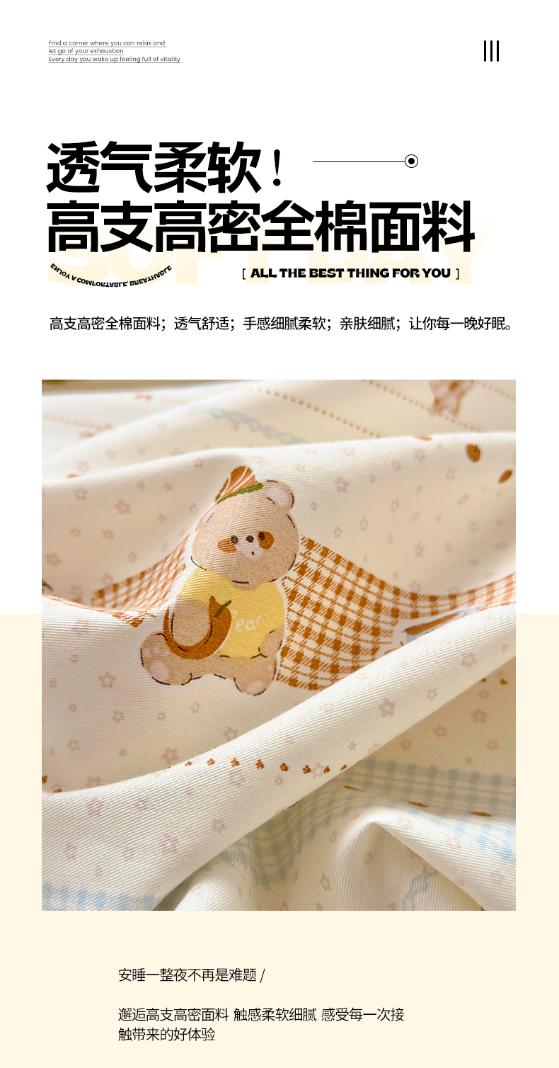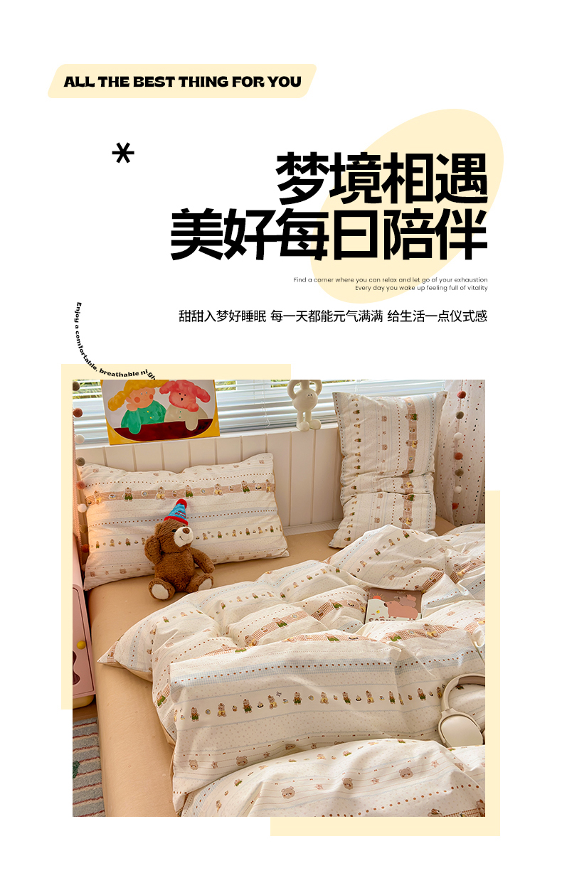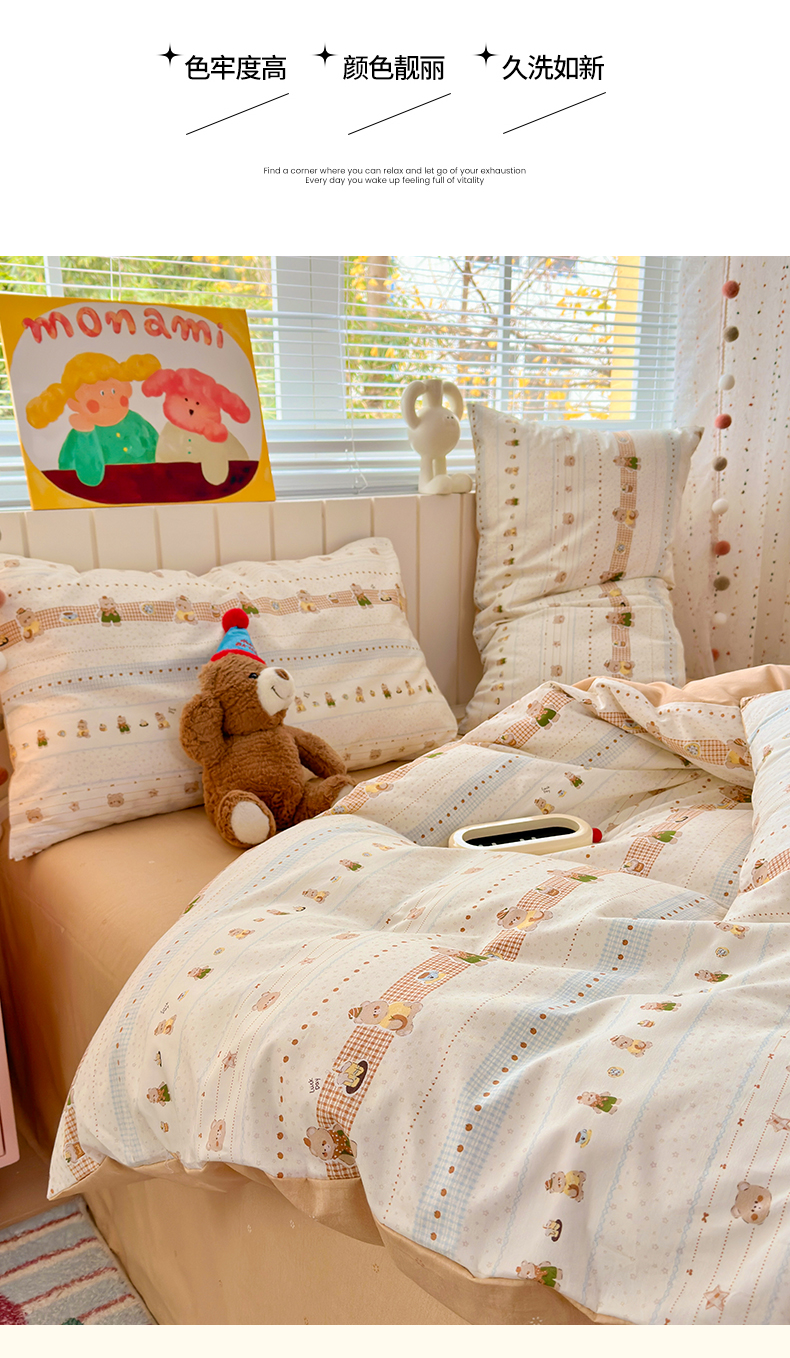 当前位置: 91家纺网 > 商品网购 > 床品套件 > 四件套 > 全棉普通四件套 > 清雅福 2026春夏新款INS小清新40支全棉13372四件套第二批 幸运星