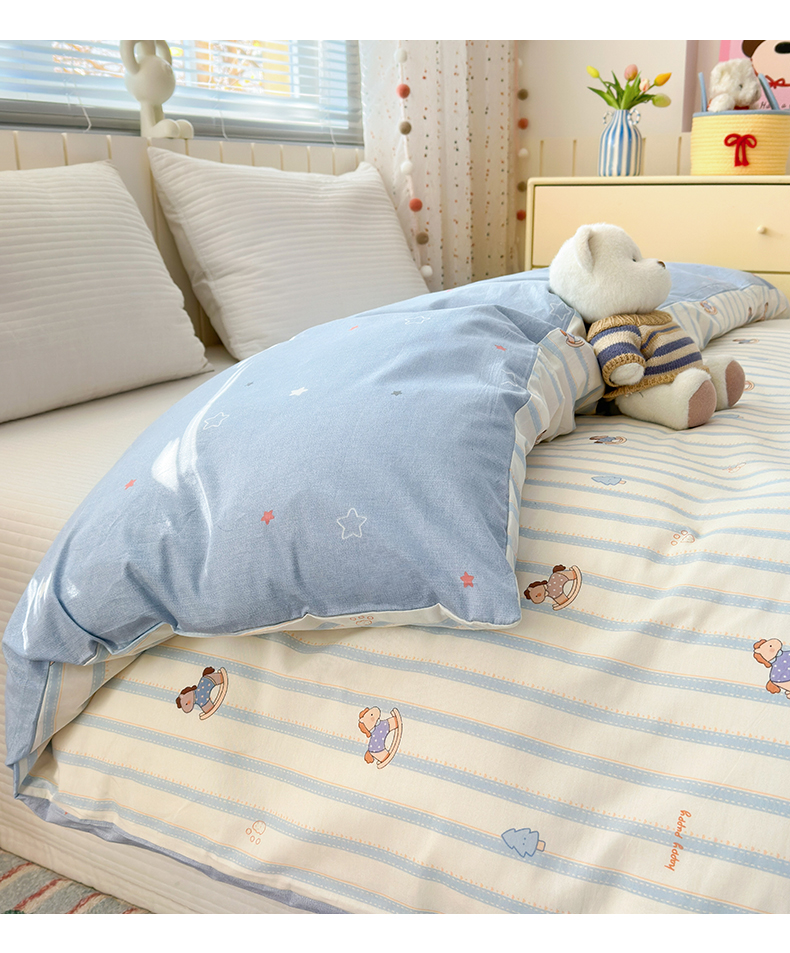 • 91家纺网 家纺一手货源 找家纺 (总)清雅福 2026春夏新款INS小清新40支全棉13372单被套第二批,可爱萌星,可爱喵喵,蓝色小象,觅秋,沫汐,跷跷马,甜蜜花园,星星布偶,星星企鹅,幸福小熊,幸运星,月亮狗