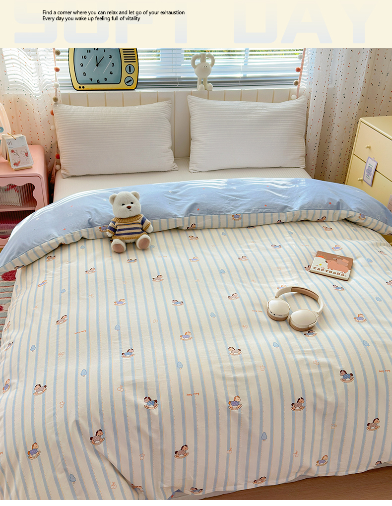 • 91家纺网 家纺一手货源 找家纺 清雅福 2026春夏新款INS小清新40支全棉13372单被套第二批 跷跷马