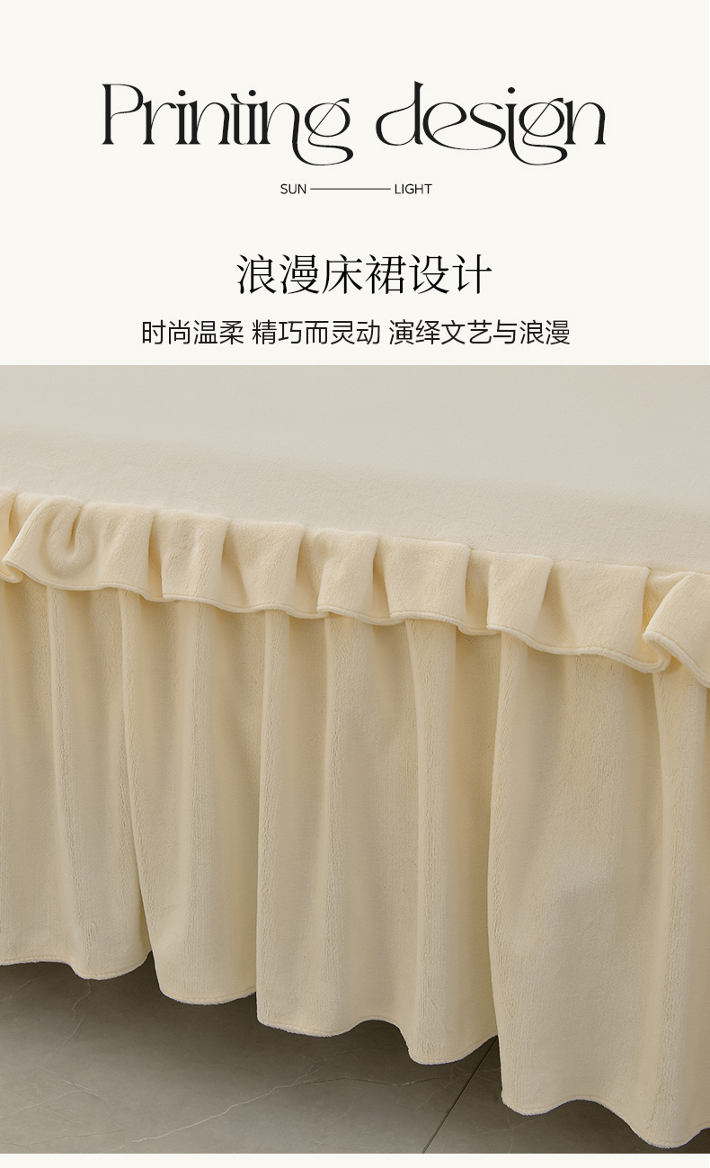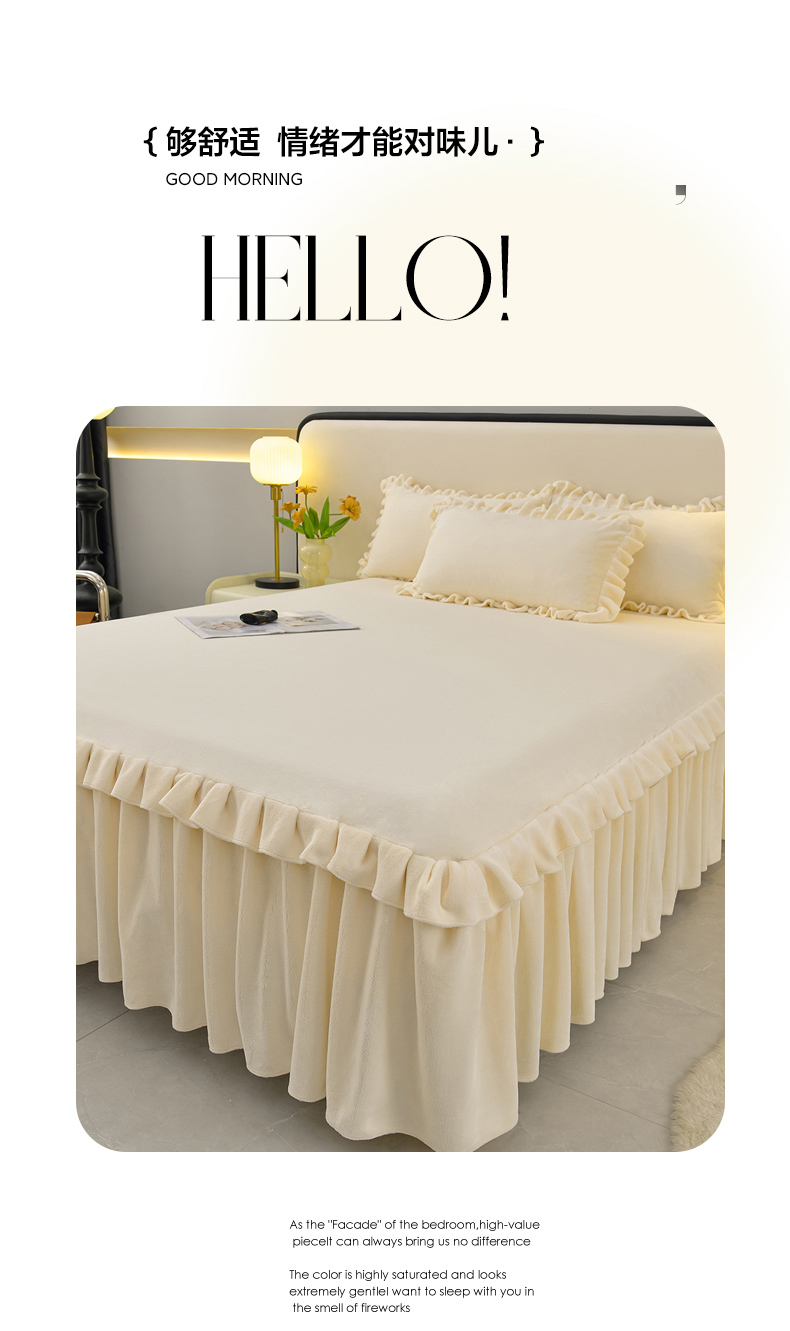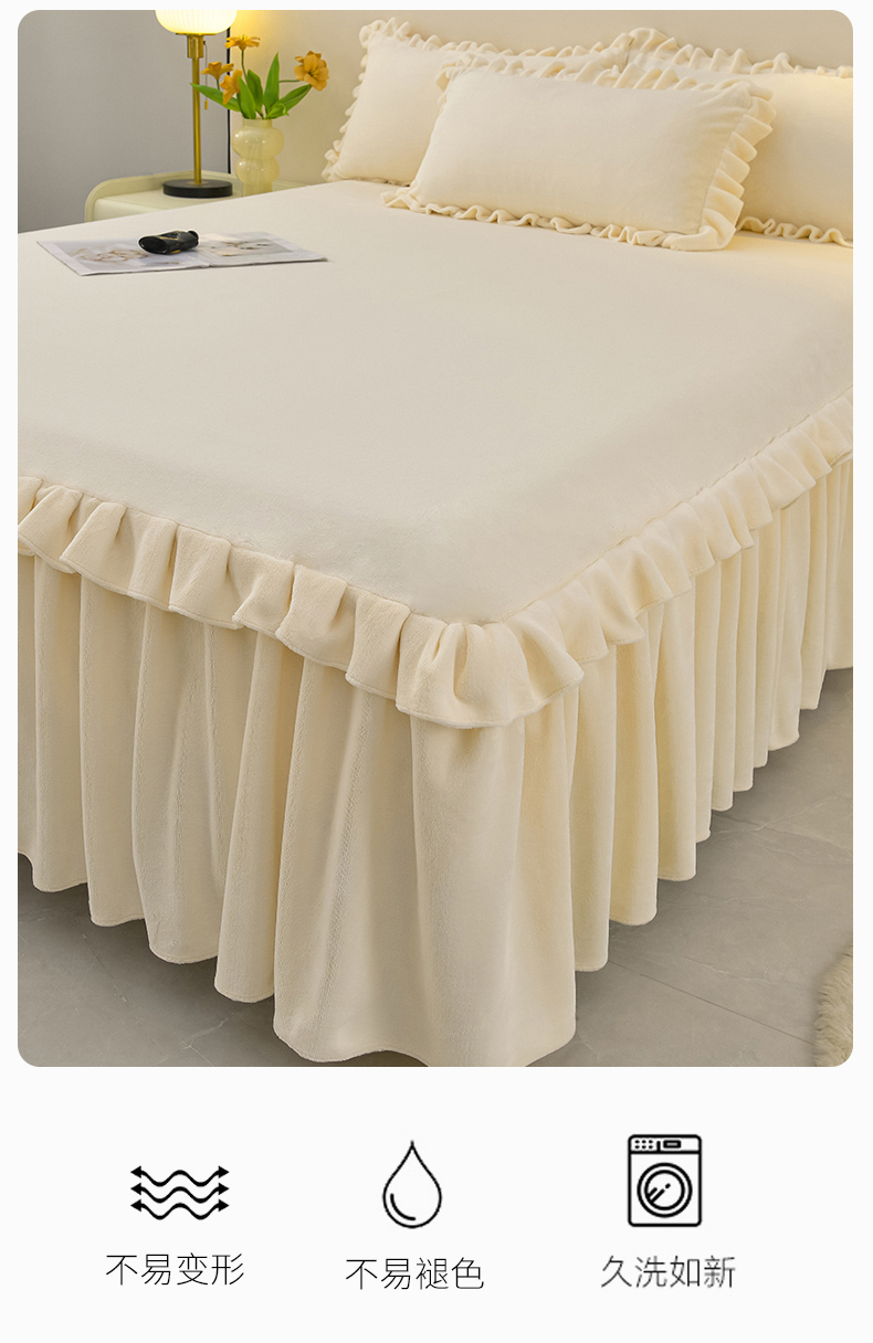 商品名称:优家居工厂店 2026新款纯色韩版花边牛奶绒床裙床罩加厚直播外贸可定做 盛世-米白