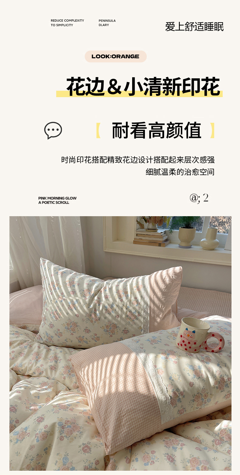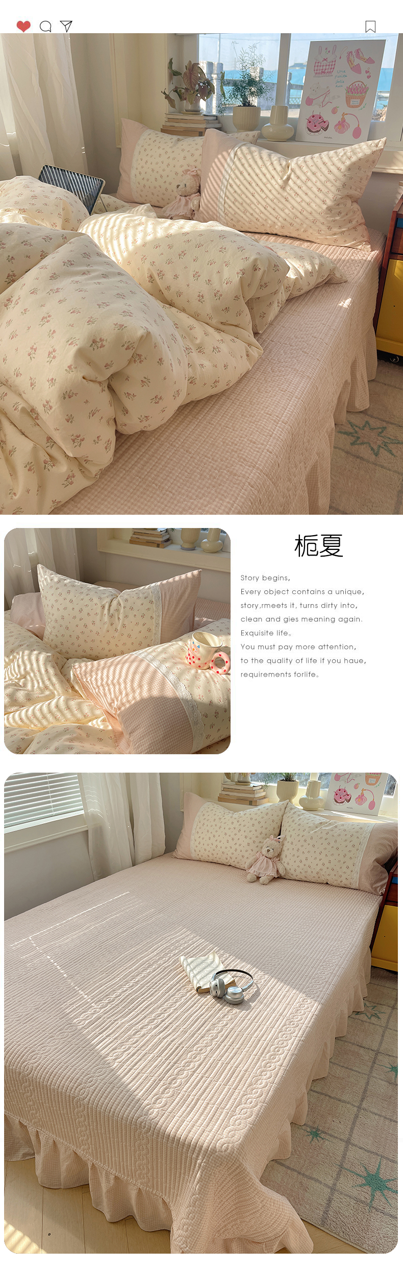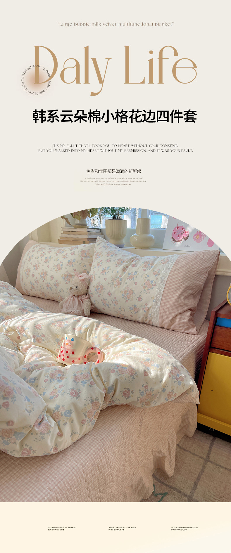 当前位置: 91家纺网 > 商品网购 > 床品套件 > 四件套 > 水洗棉四件套 > 花漾家居 2026新款小红书爆款小清新格子双拼刺绣小花边古法水洗棉四件套 花田初夏