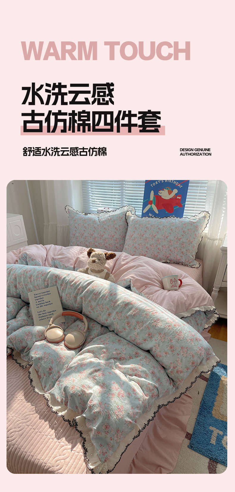当前位置: 91家纺网 > 商品网购 > 床品套件 > 四件套 > 其它四件套 > 花漾家居 2026小红书推荐款小清新刺绣花边款床单床盖款四件套新款 玖鸢