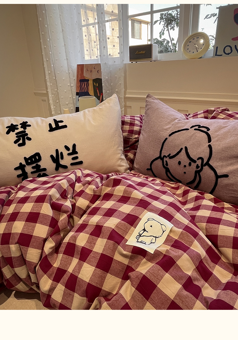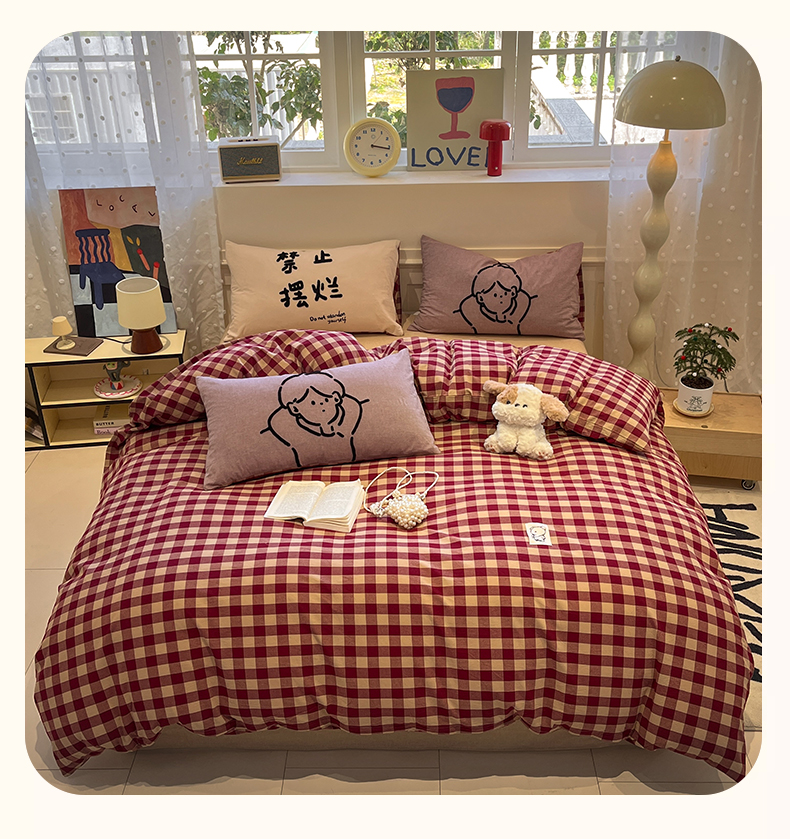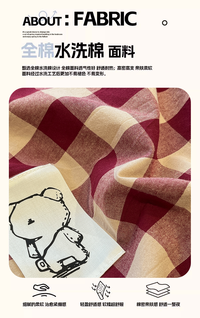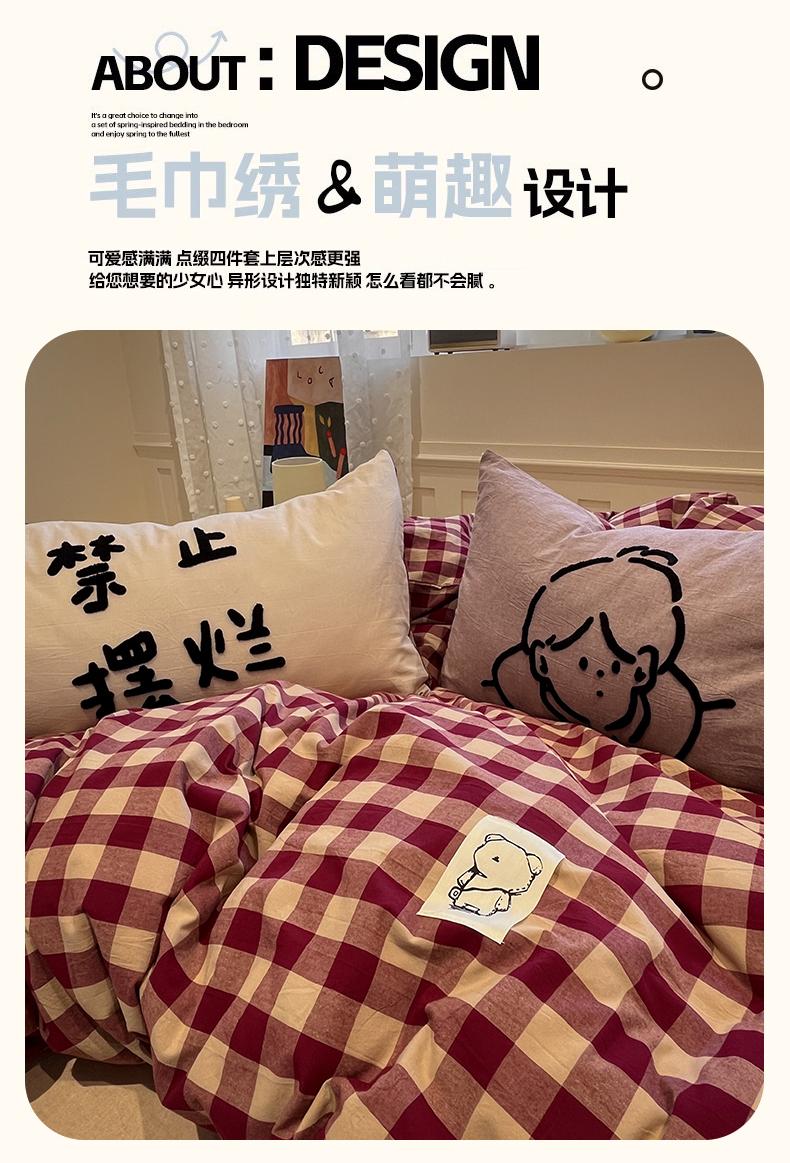 当前位置: 91家纺网 > 商品网购 > 床品套件 > 四件套 > 全棉普通四件套 > 花漾家居 2026新款无印宿舍简约全棉色织水洗棉毛巾绣四件套 红中格