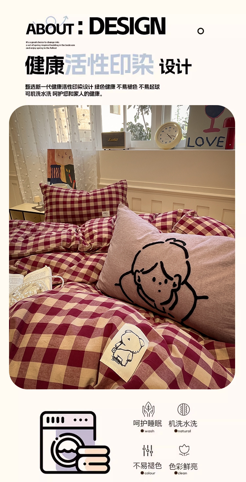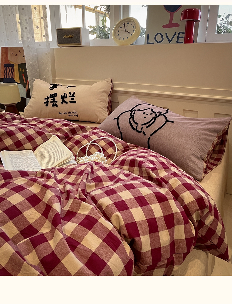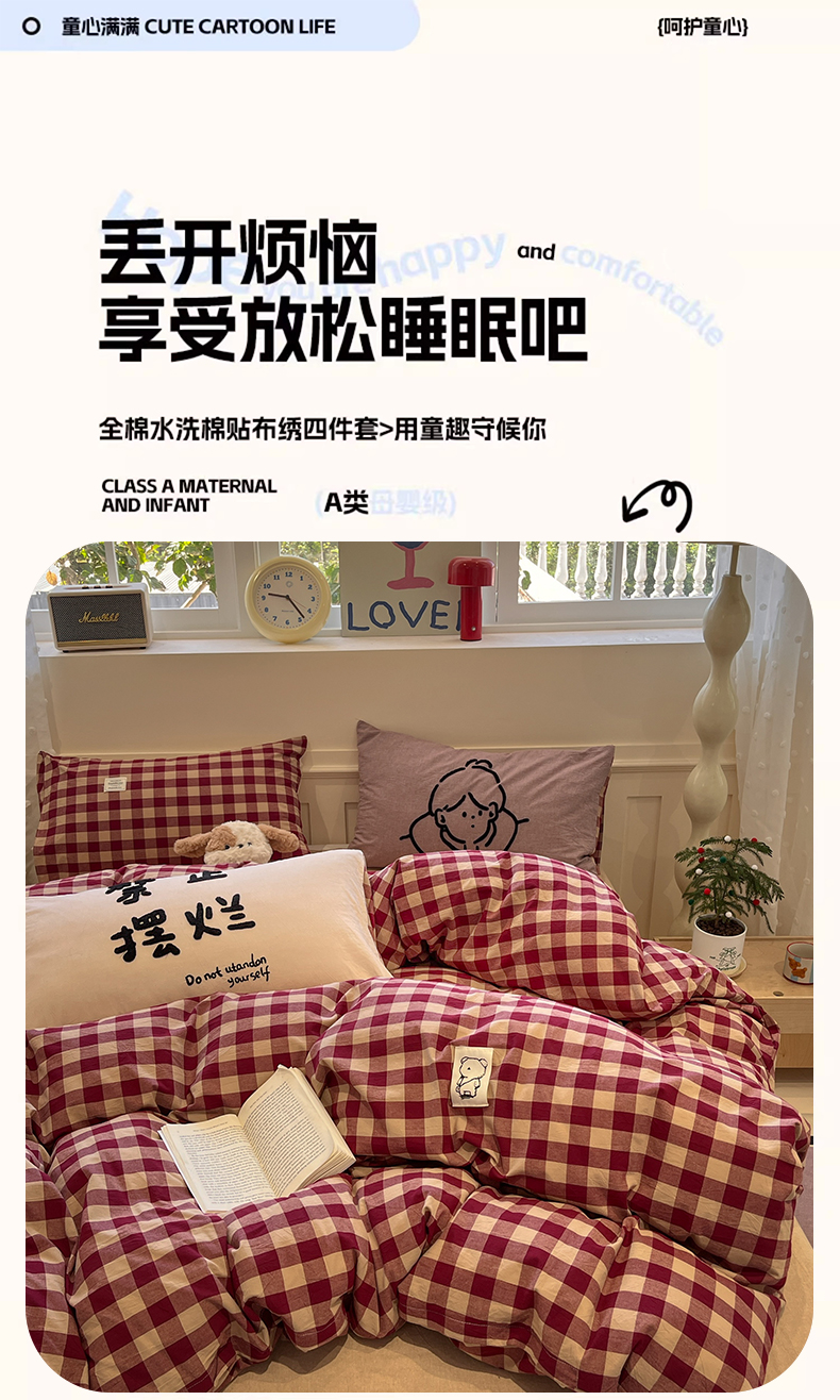 当前位置: 91家纺网 > 商品网购 > 床品套件 > 四件套 > 全棉普通四件套 > 花漾家居 2026新款无印宿舍简约全棉色织水洗棉毛巾绣四件套 红中格
