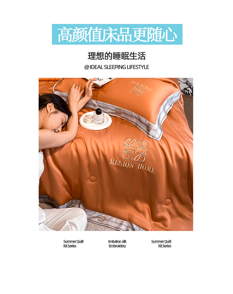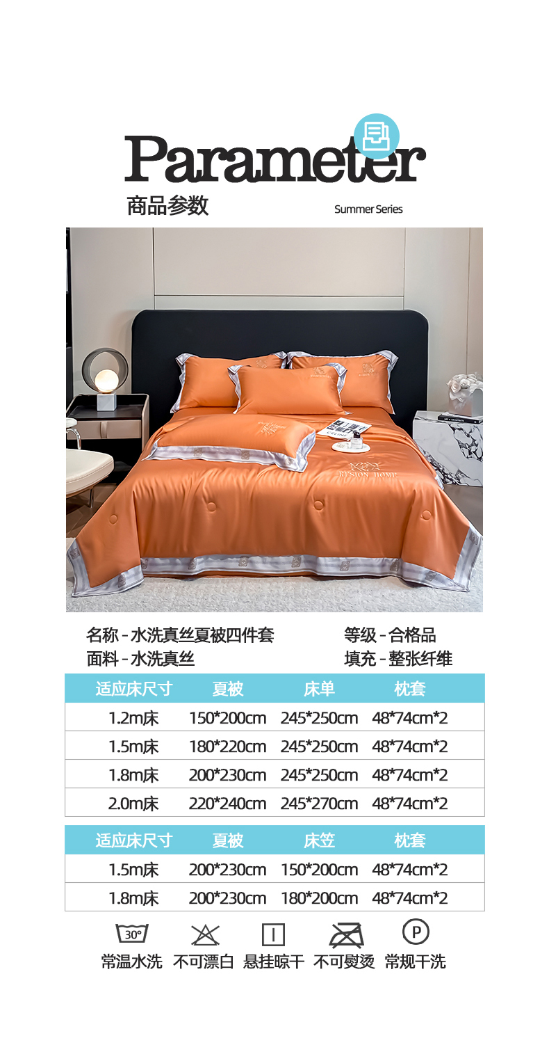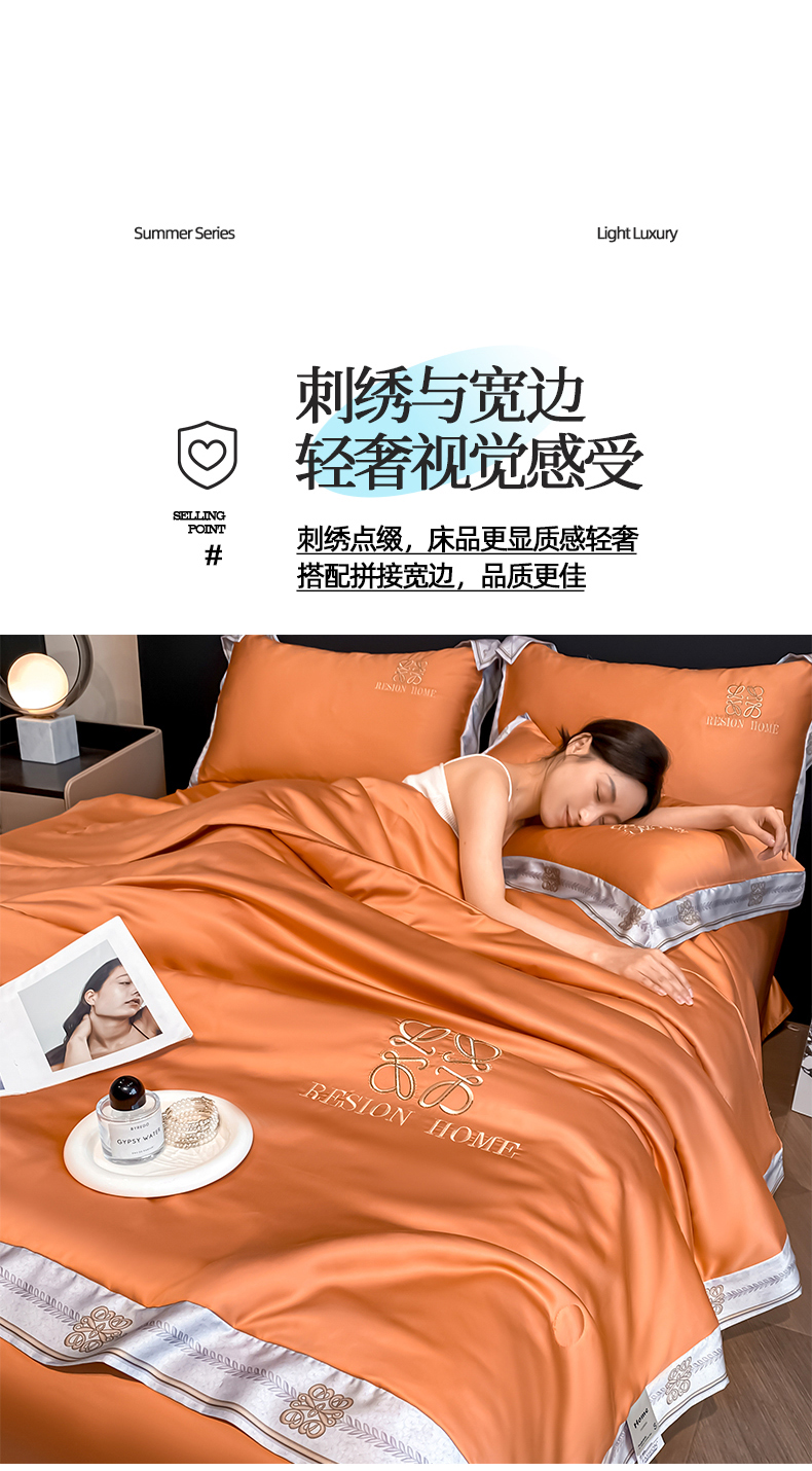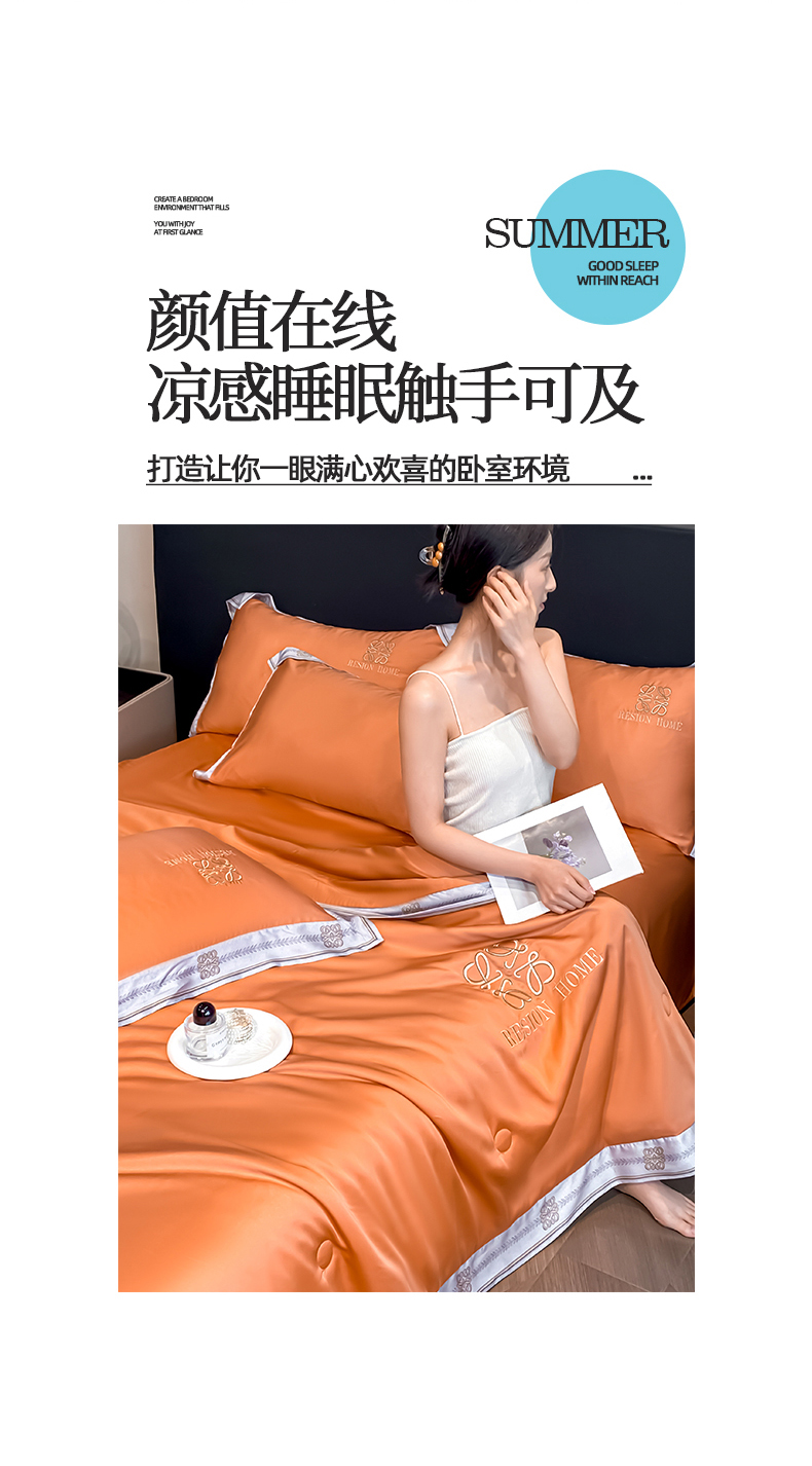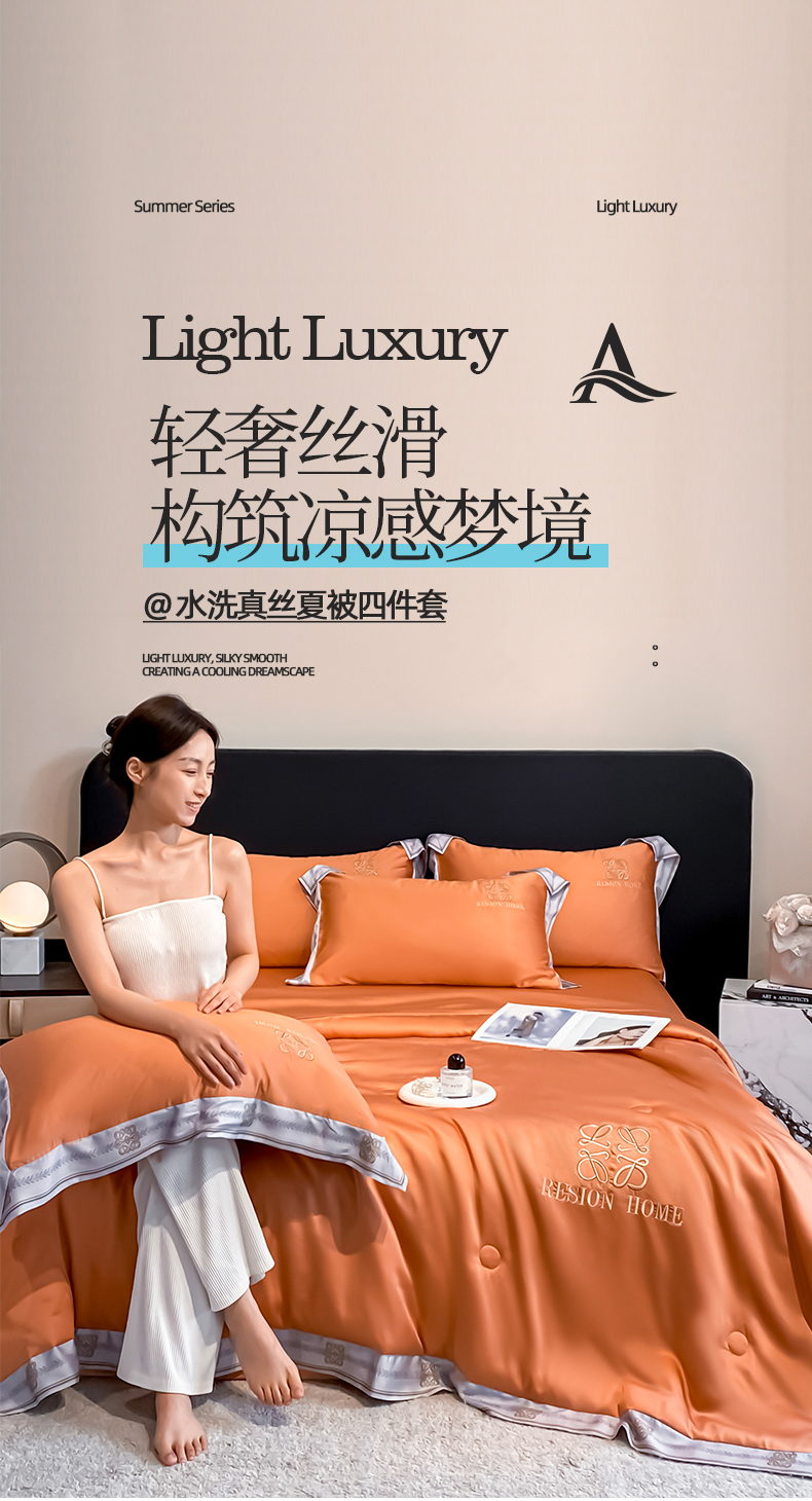 • 91家纺网 家纺一手货源 找家纺 露梦家纺 2026新款初夏水洗真丝夏被四件套 初夏-玛仕橘