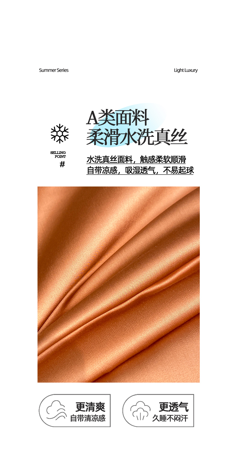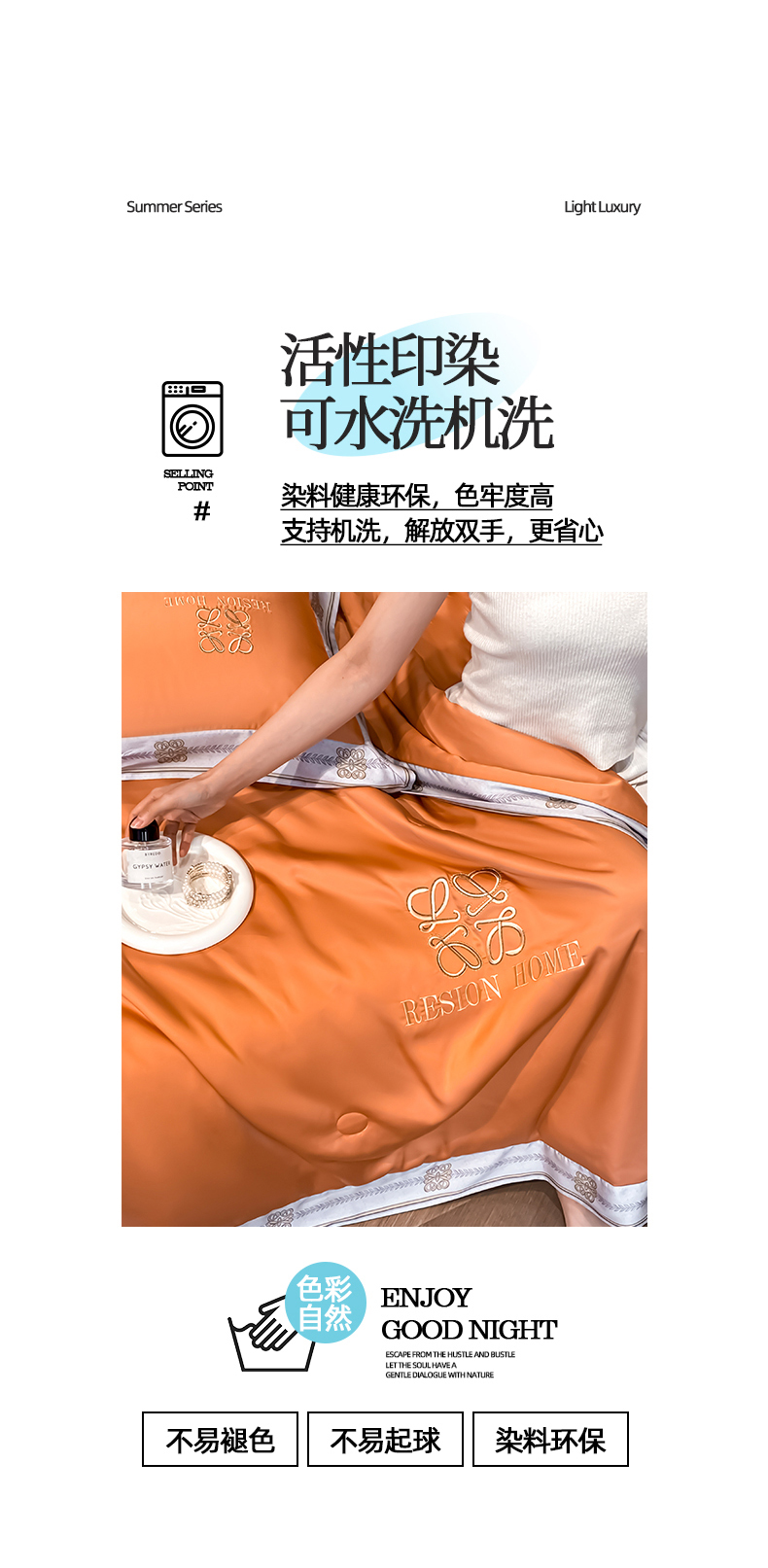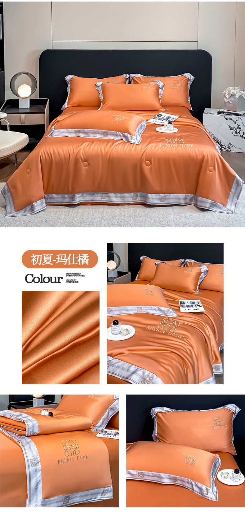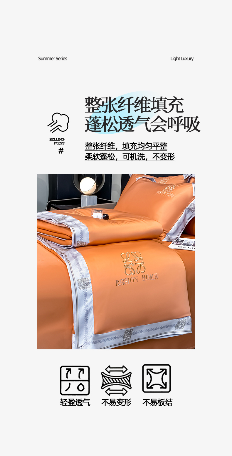 • 91家纺网 家纺一手货源 找家纺 露梦家纺 2026新款初夏水洗真丝夏被四件套 初夏-玛仕橘