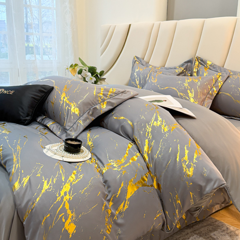 (总)棠颂家纺 2026新款直播热款沐光天丝烫金四件套吊边床单一字绣(礼盒款),鎏金岁月-白金,鎏金岁月-星辰灰,樱落星河