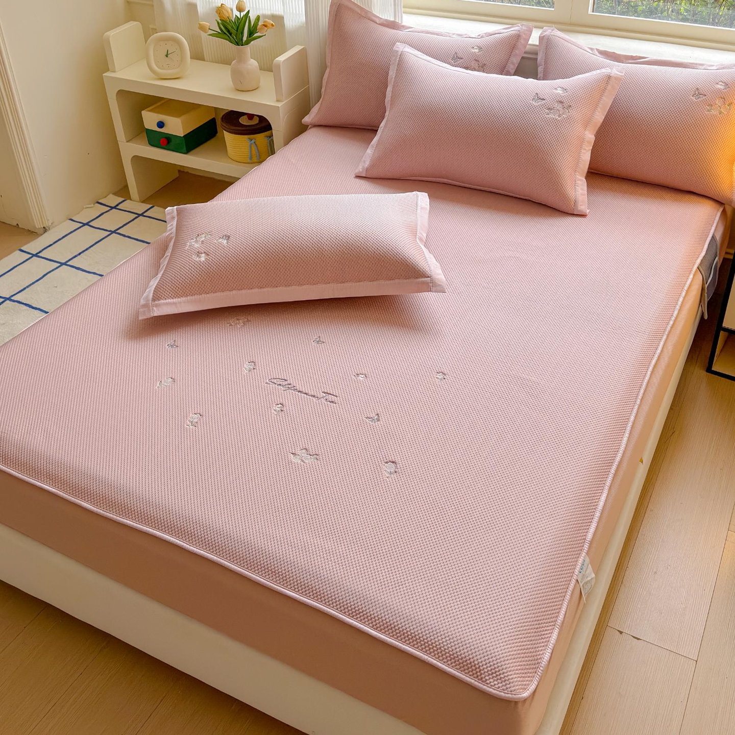 席匠 2026新款直角包边绣花玫瑰床笠款凉席席子凉席三件套 粉色