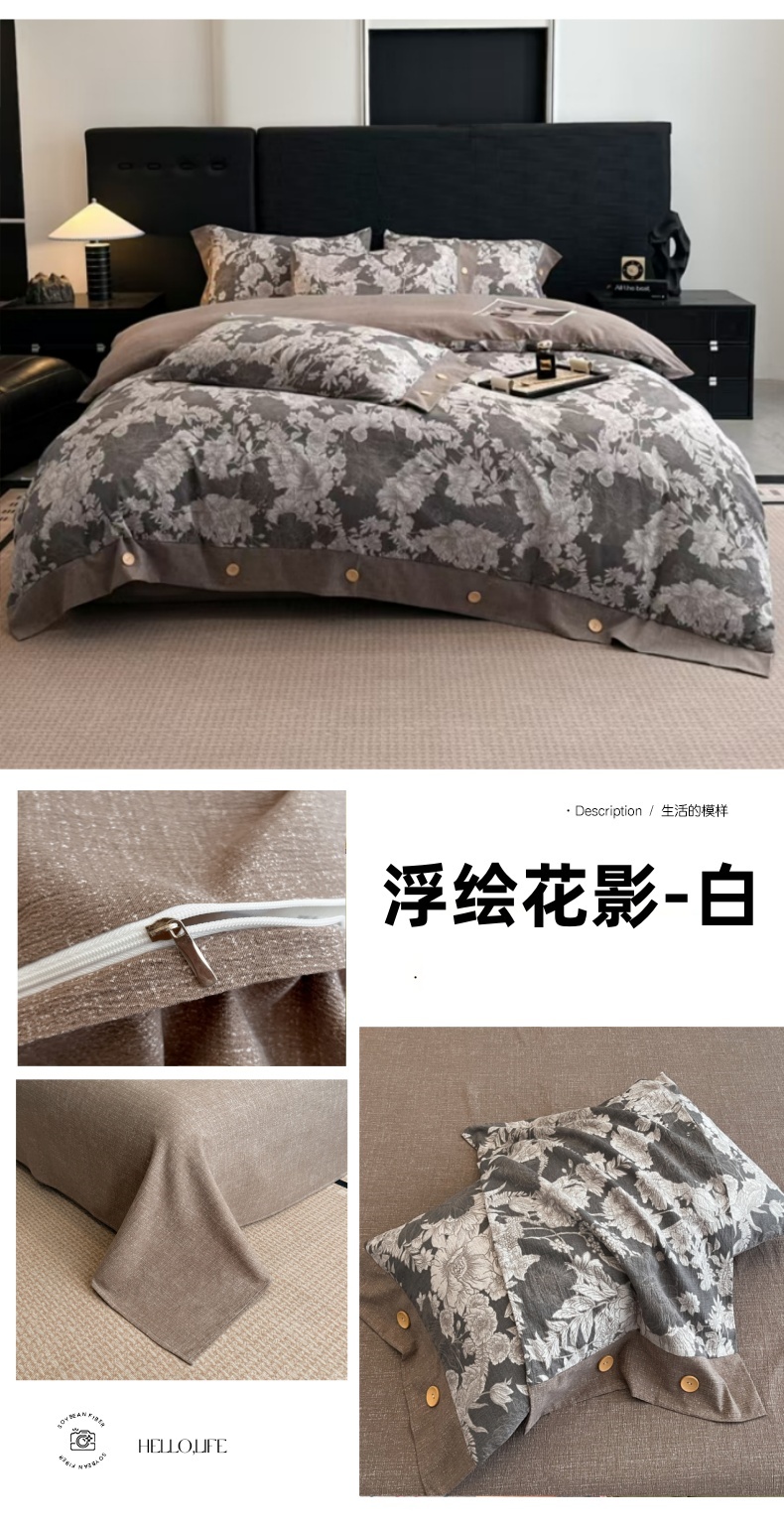 (总)圣比熊 2026新款A类原麻纽扣加厚被套床单宿舍双人床仿亚麻被子,瑞卡斯,古堡花园-咖,山花浪漫,花盏如约,安紫,花与蝶,春风序,花涧-灰,金锦,锦花,洛克-咖,沐枫,叶影,忆秋风,幽梦