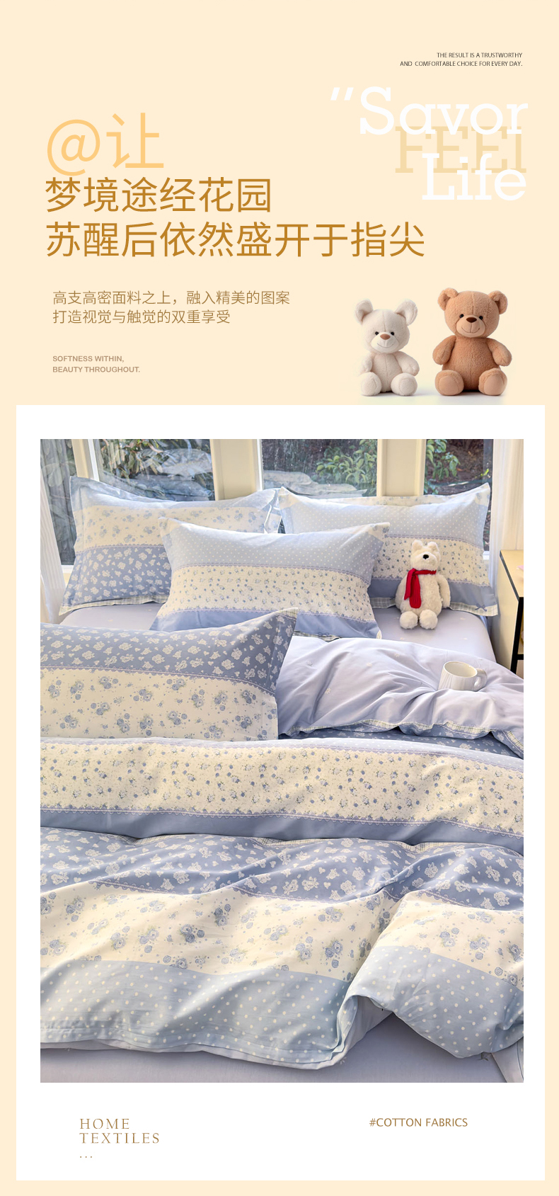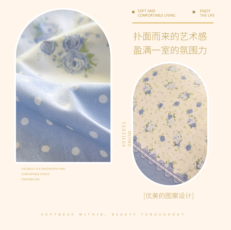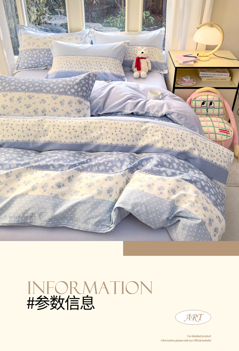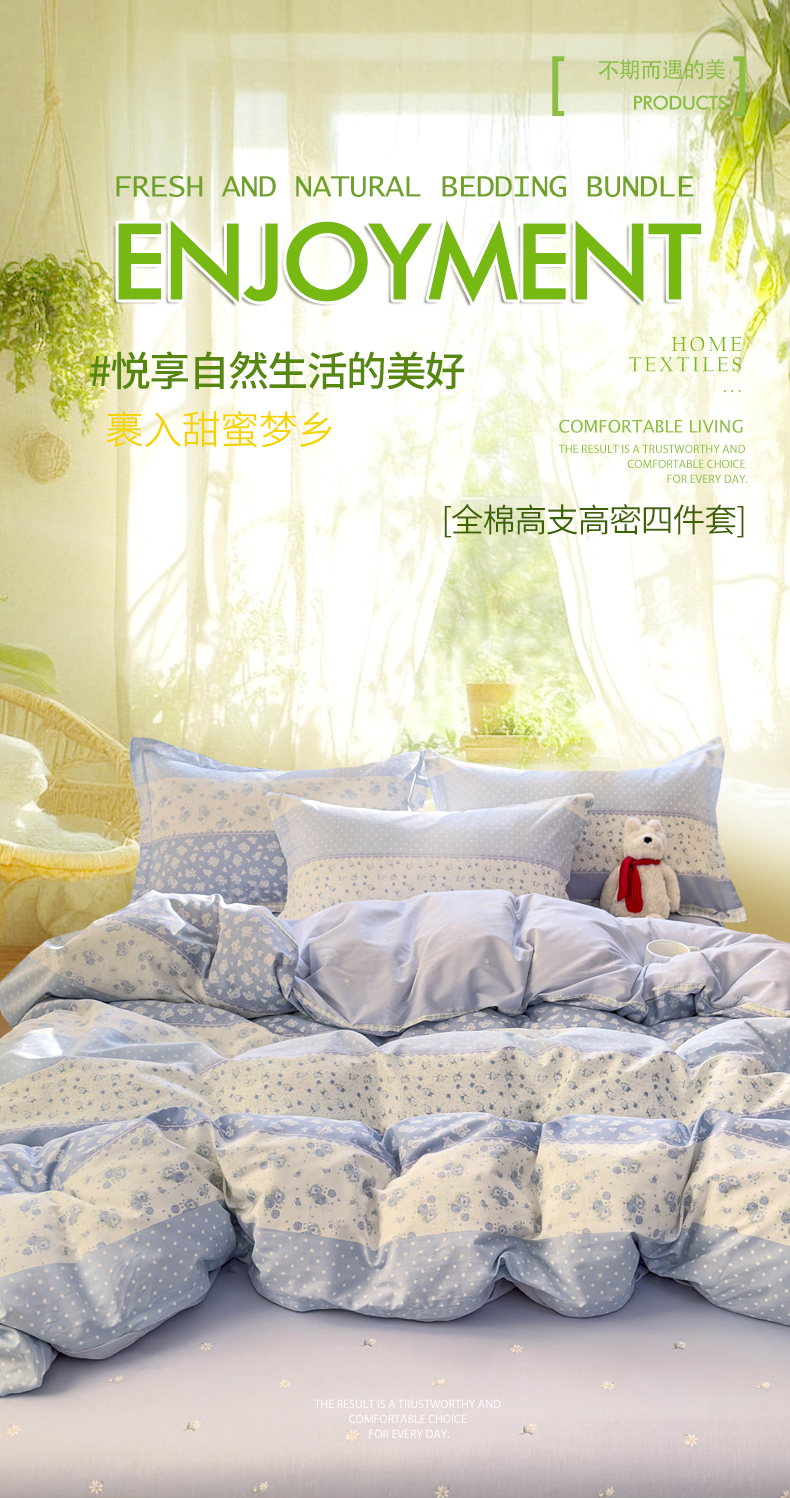 当前位置: 91家纺网 > 商品网购 > 床品套件 > 四件套 > 全棉普通四件套 > 洺兰家居 2026新款全棉纯棉13070小清新印花四件套 蓝调记忆