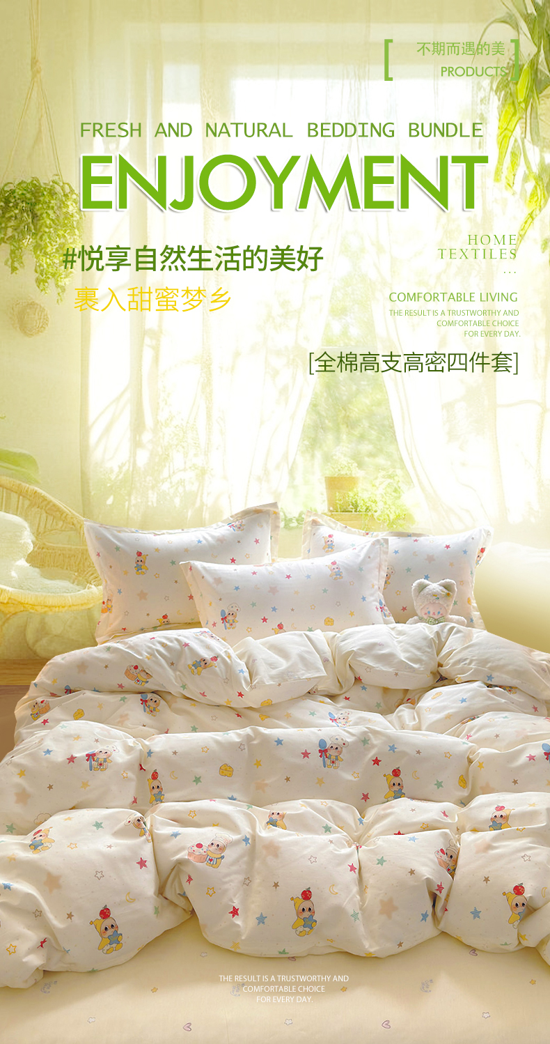 当前位置: 91家纺网 > 商品网购 > 床品套件 > 四件套 > 全棉普通四件套 > 洺兰家居 2026新款全棉纯棉13070小清新印花四件套 小星星