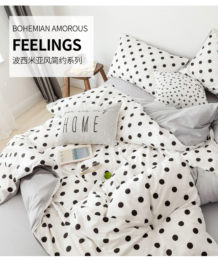 当前位置: 91家纺网 > 商品网购 > 床品套件 > 四件套 > 全棉普通四件套 > 艾沁 2019新款波西米亚风简约纯棉四件套 波点