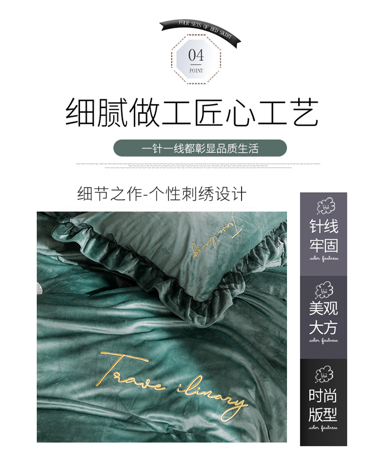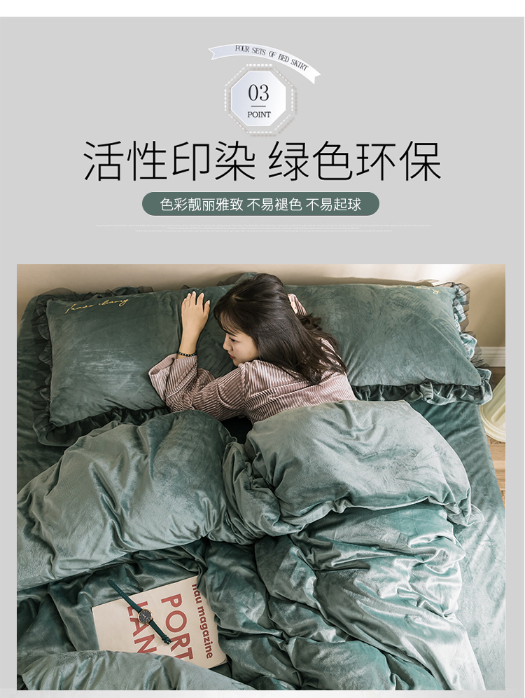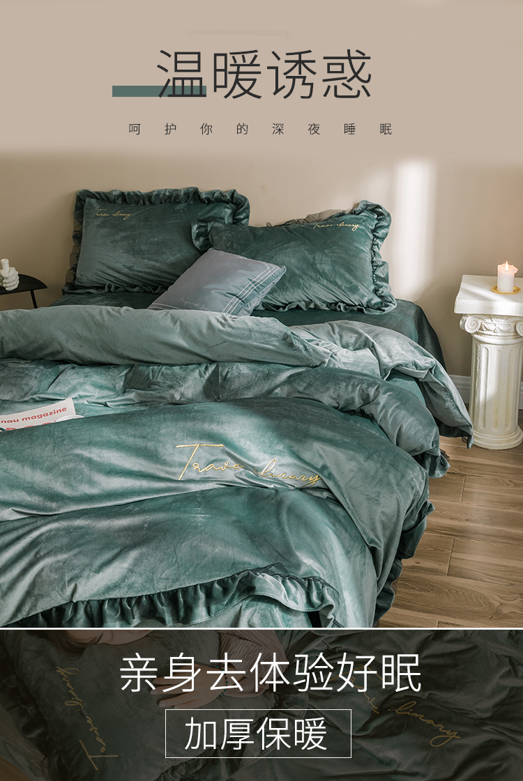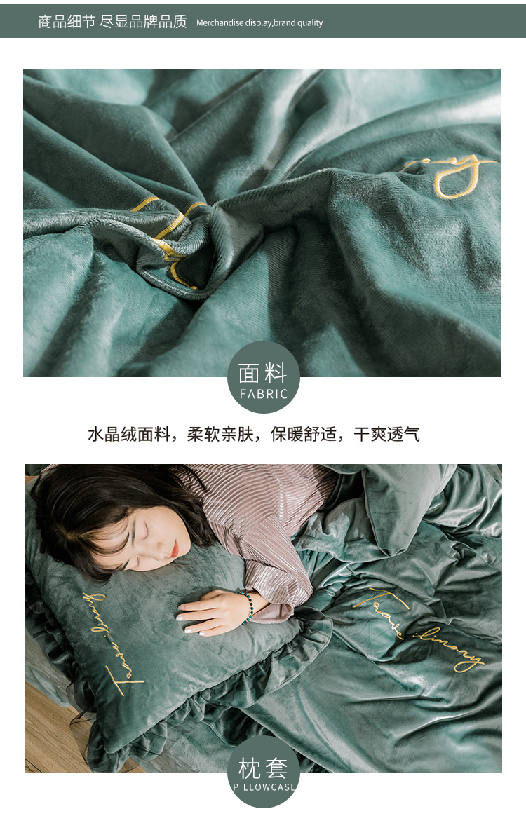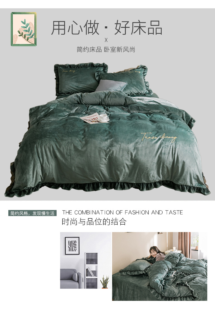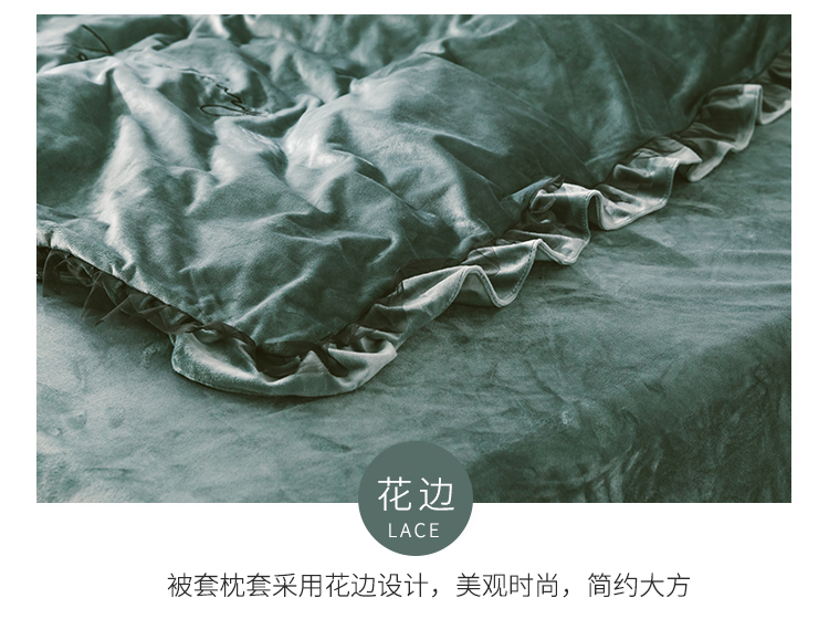 商品名称:润缦 2019新款水晶绒蕾丝边四件套 蕾丝-英伦绿