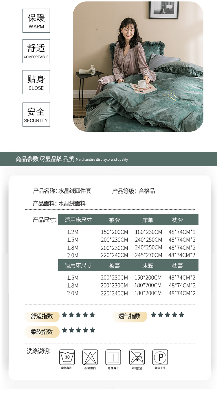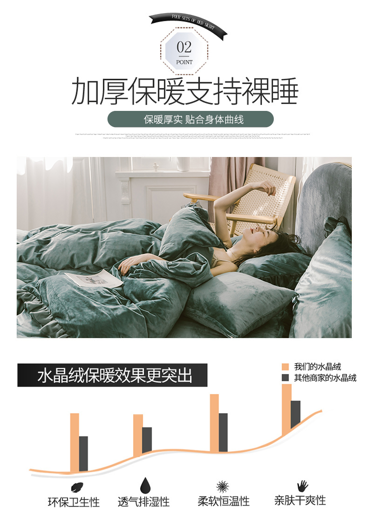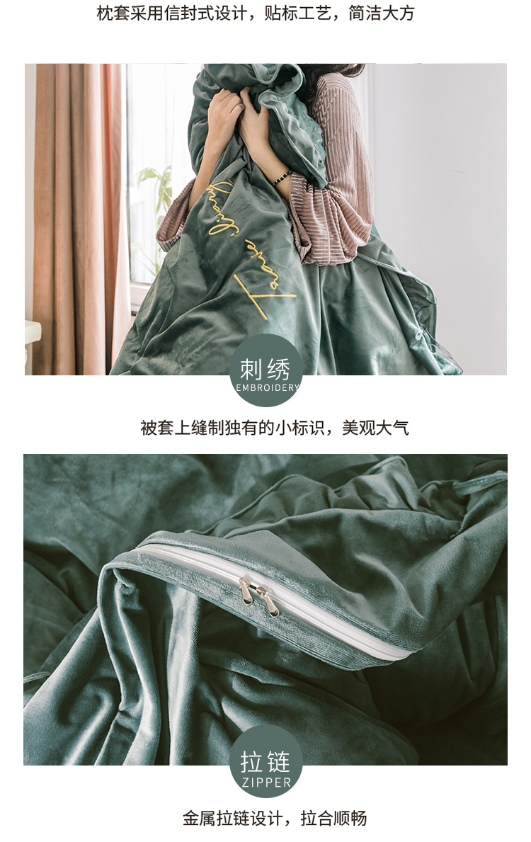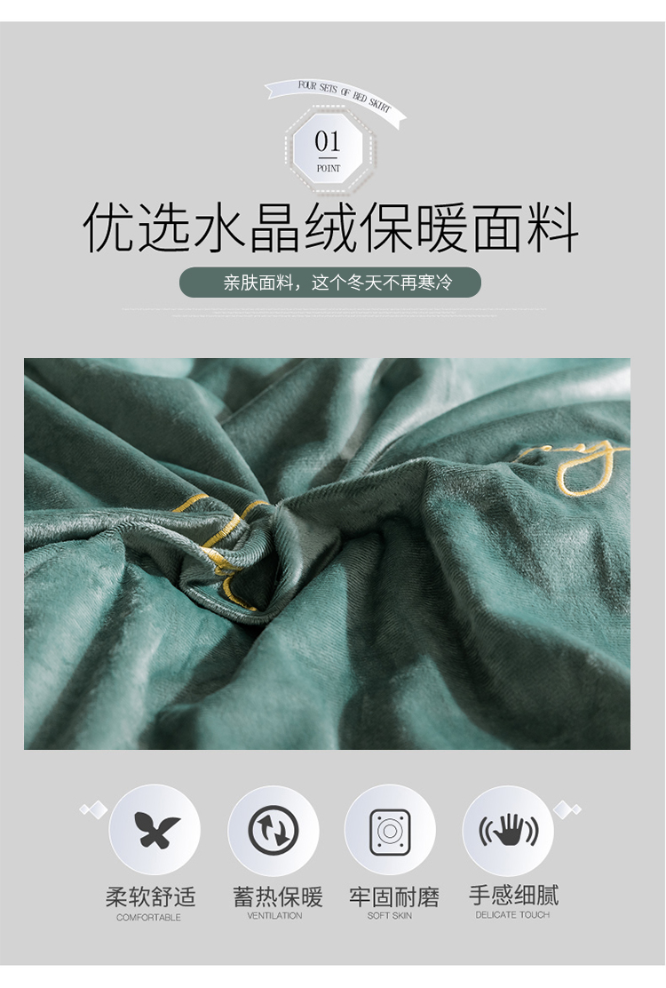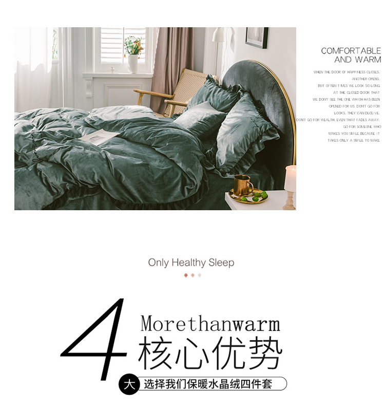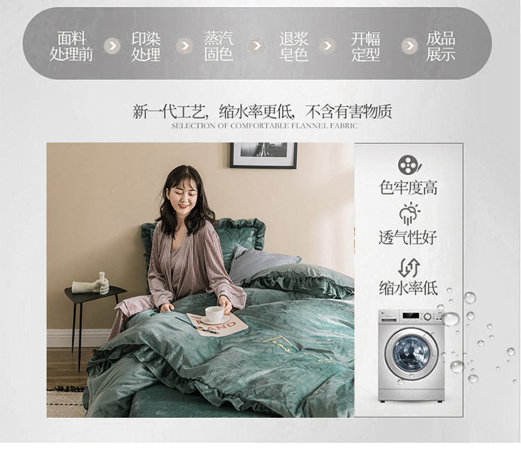 商品名称:润缦 2019新款水晶绒蕾丝边四件套 蕾丝-英伦绿