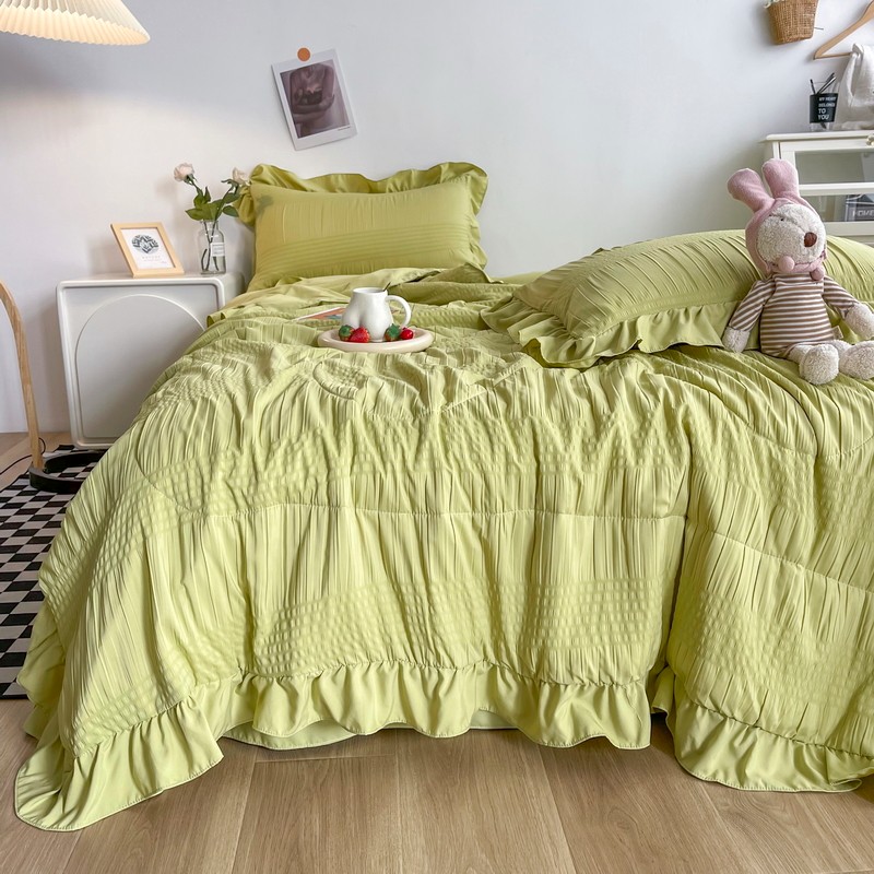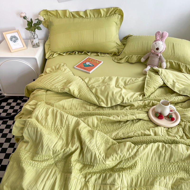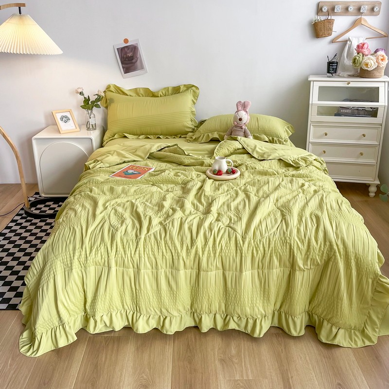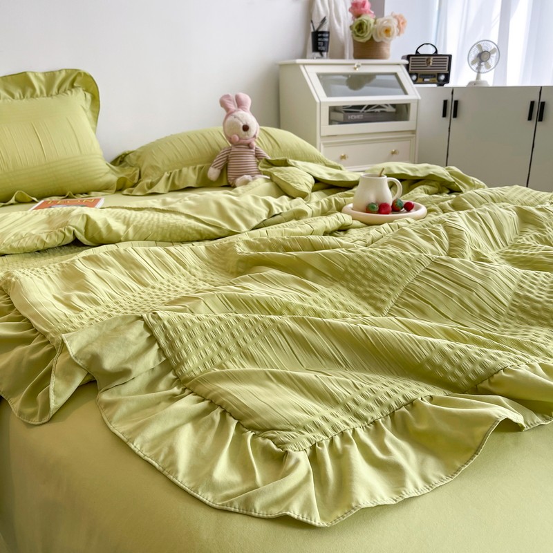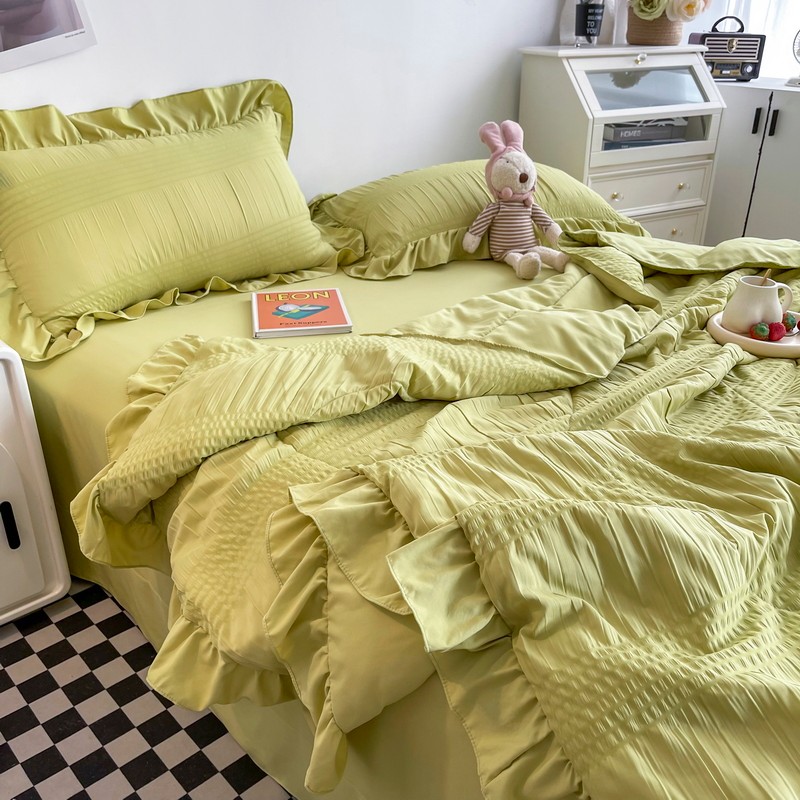 仟网汇 2022新款雪纺边泡泡纱夏被四件套 芥末绿