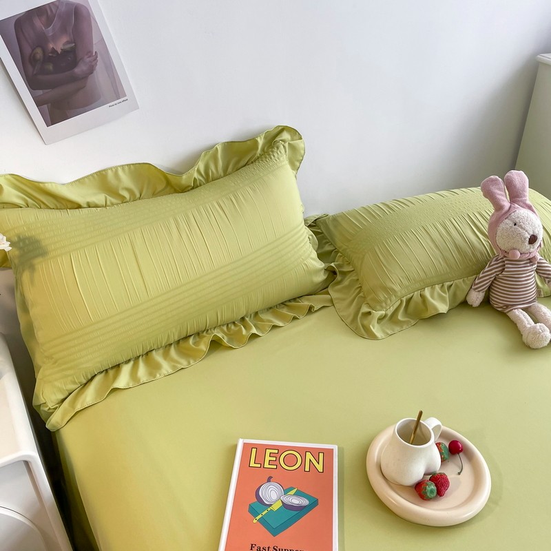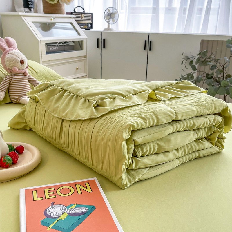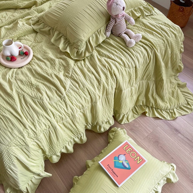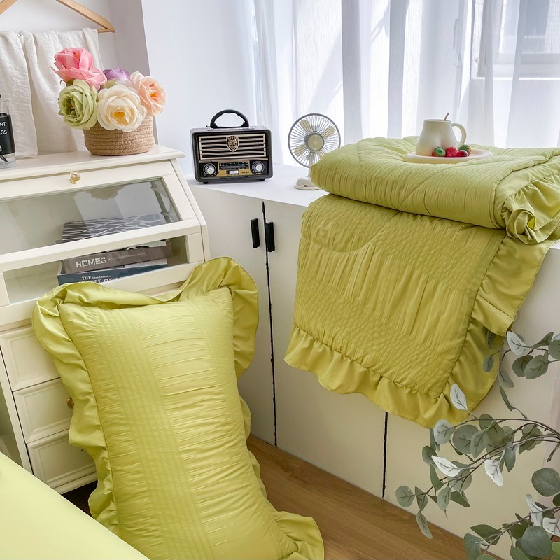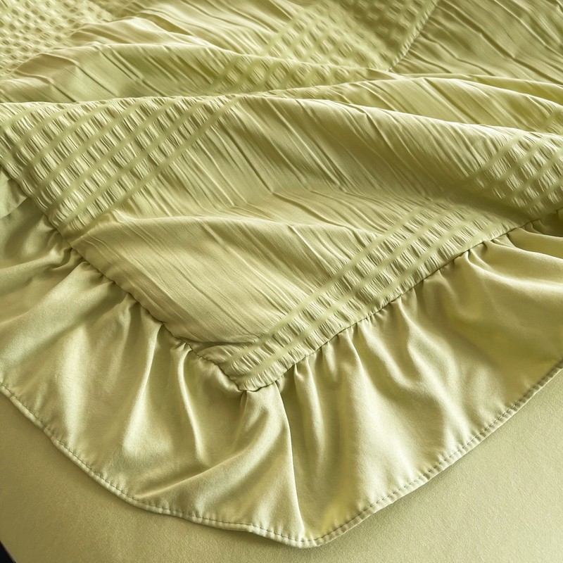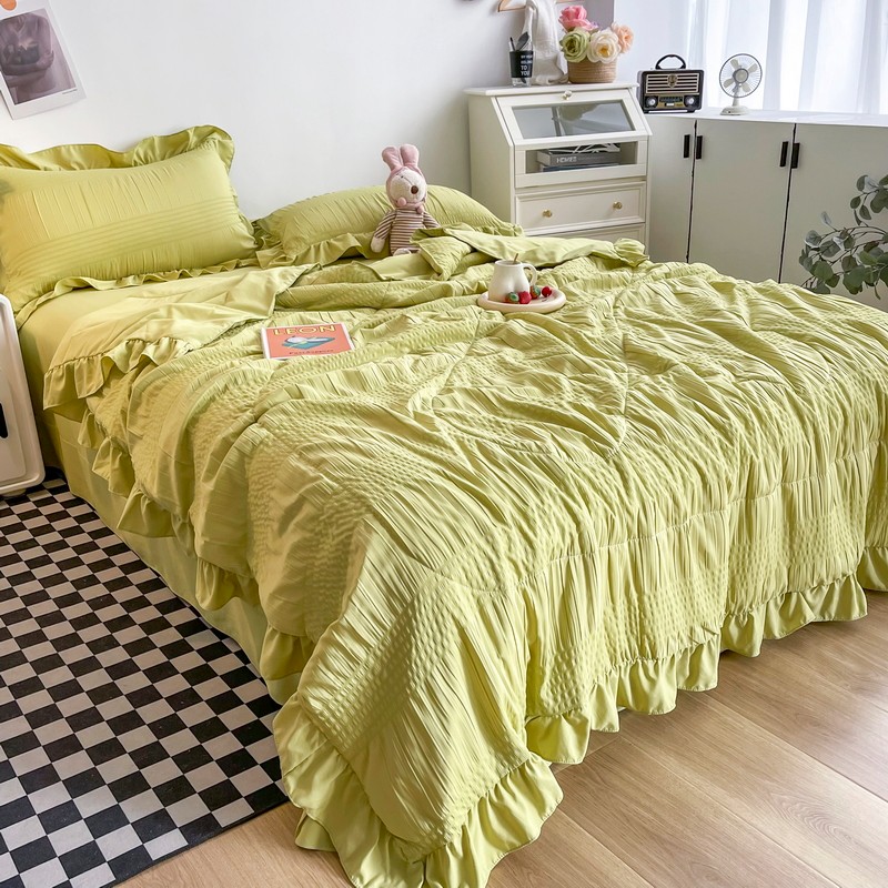 仟网汇 2022新款雪纺边泡泡纱夏被四件套 芥末绿
