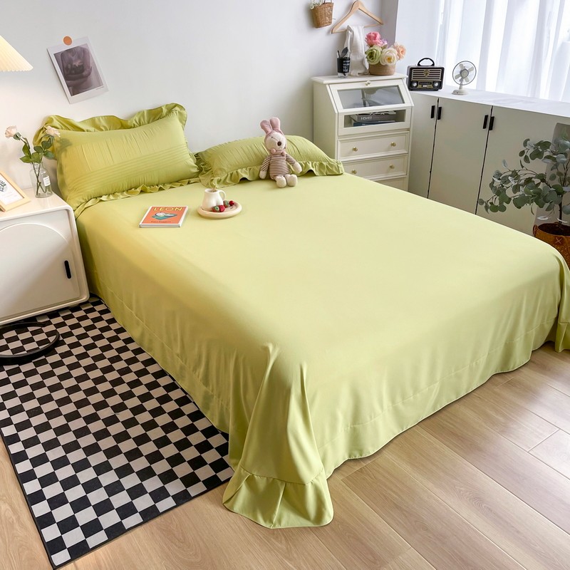 商品名称:仟网汇 2022新款雪纺边泡泡纱夏被四件套 芥末绿