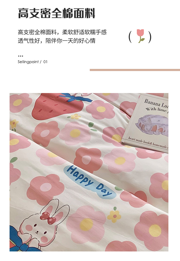 商品名称:澳萝拉 2023新款全棉印花四件套会员减5元 兔兔莓莓
