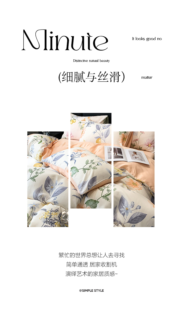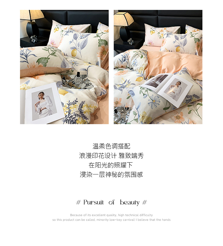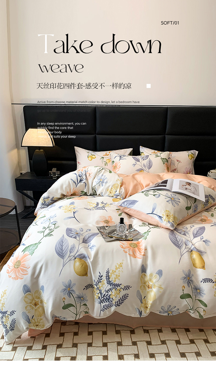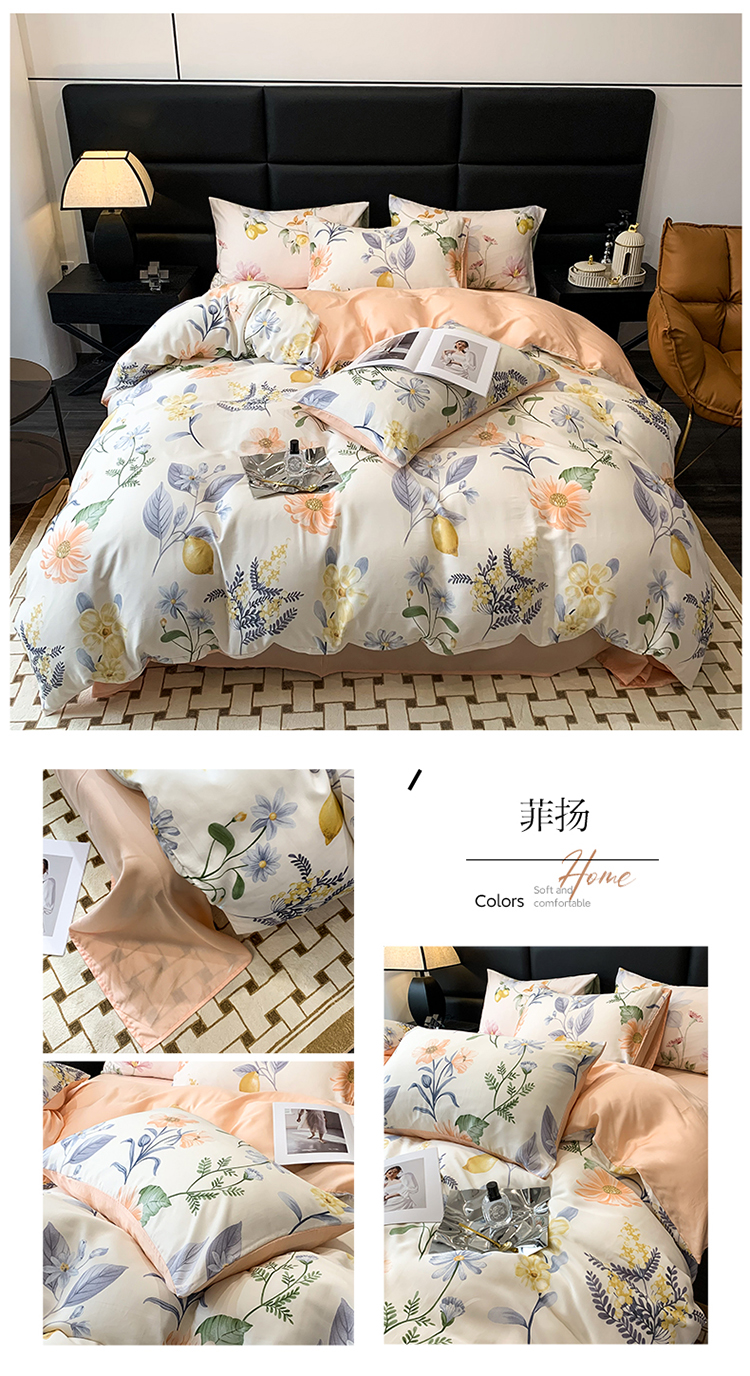 (总)澳萝拉 2023新款天丝印花四件套,芳馨,菲扬,江夏,恋馨,柠染-粉,浅语初开-米,叶飘,月韵