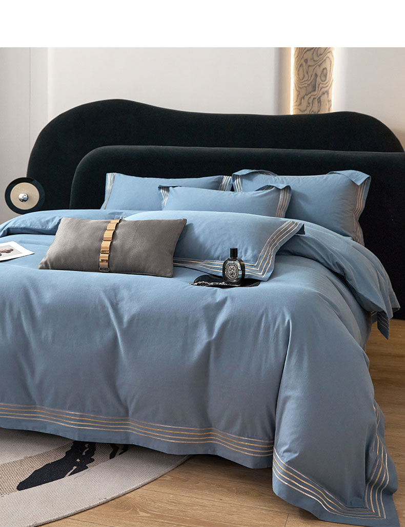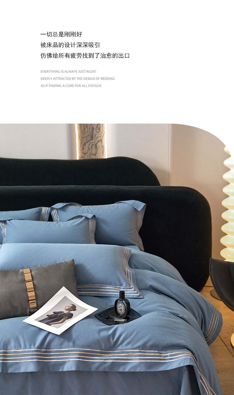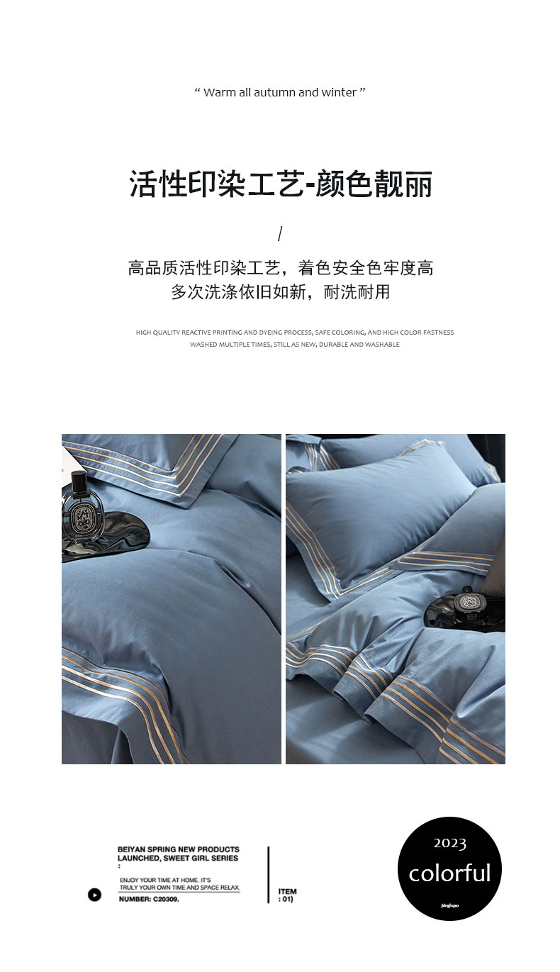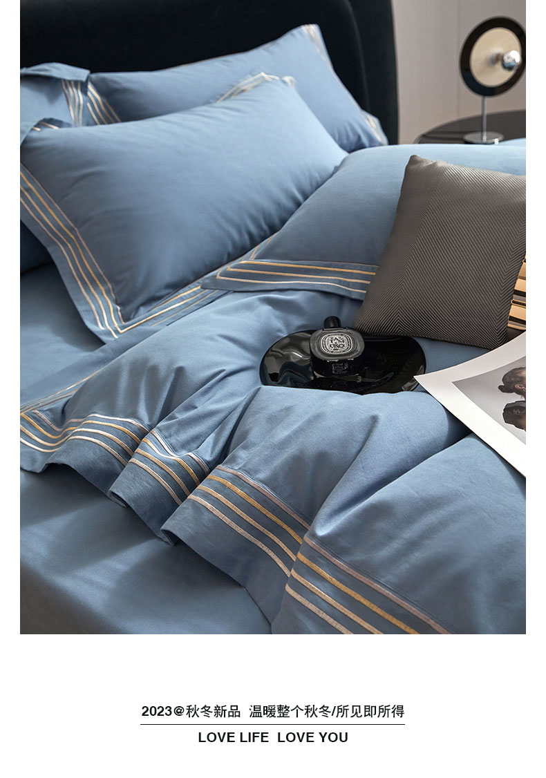 安妮家居 2023新款全棉轻磨毛刺绣四件套-奥斯汀 宾利蓝