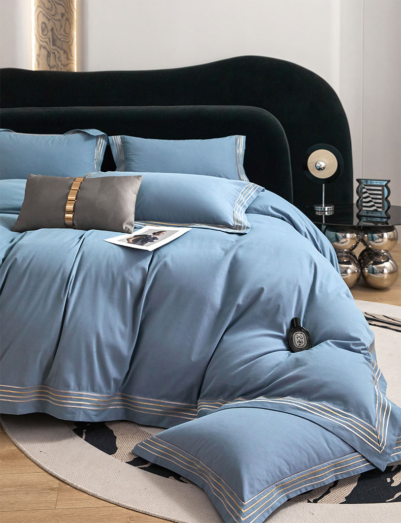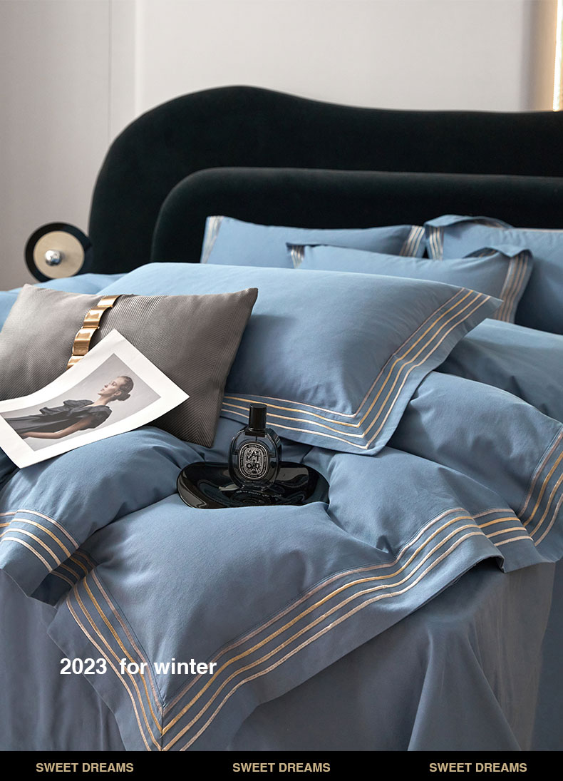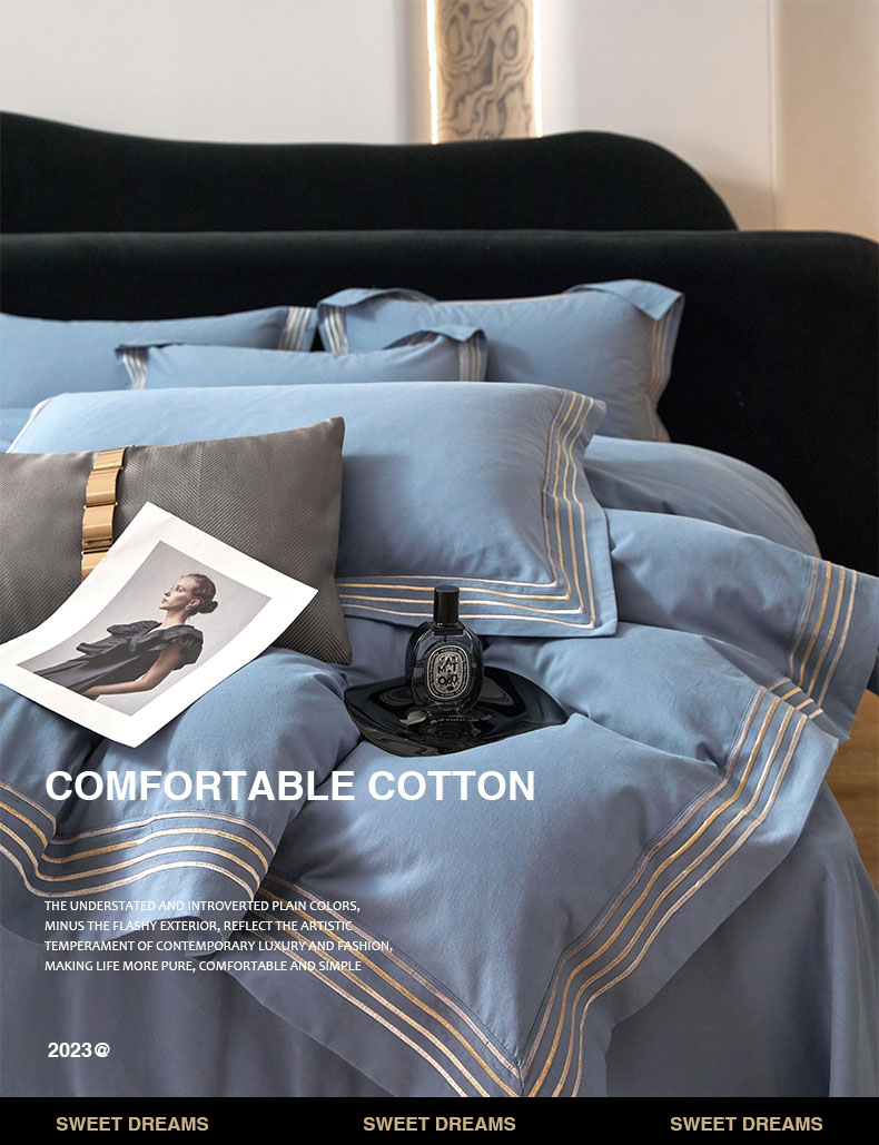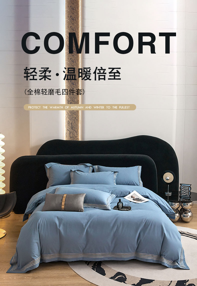 安妮家居 2023新款全棉轻磨毛刺绣四件套-奥斯汀 宾利蓝