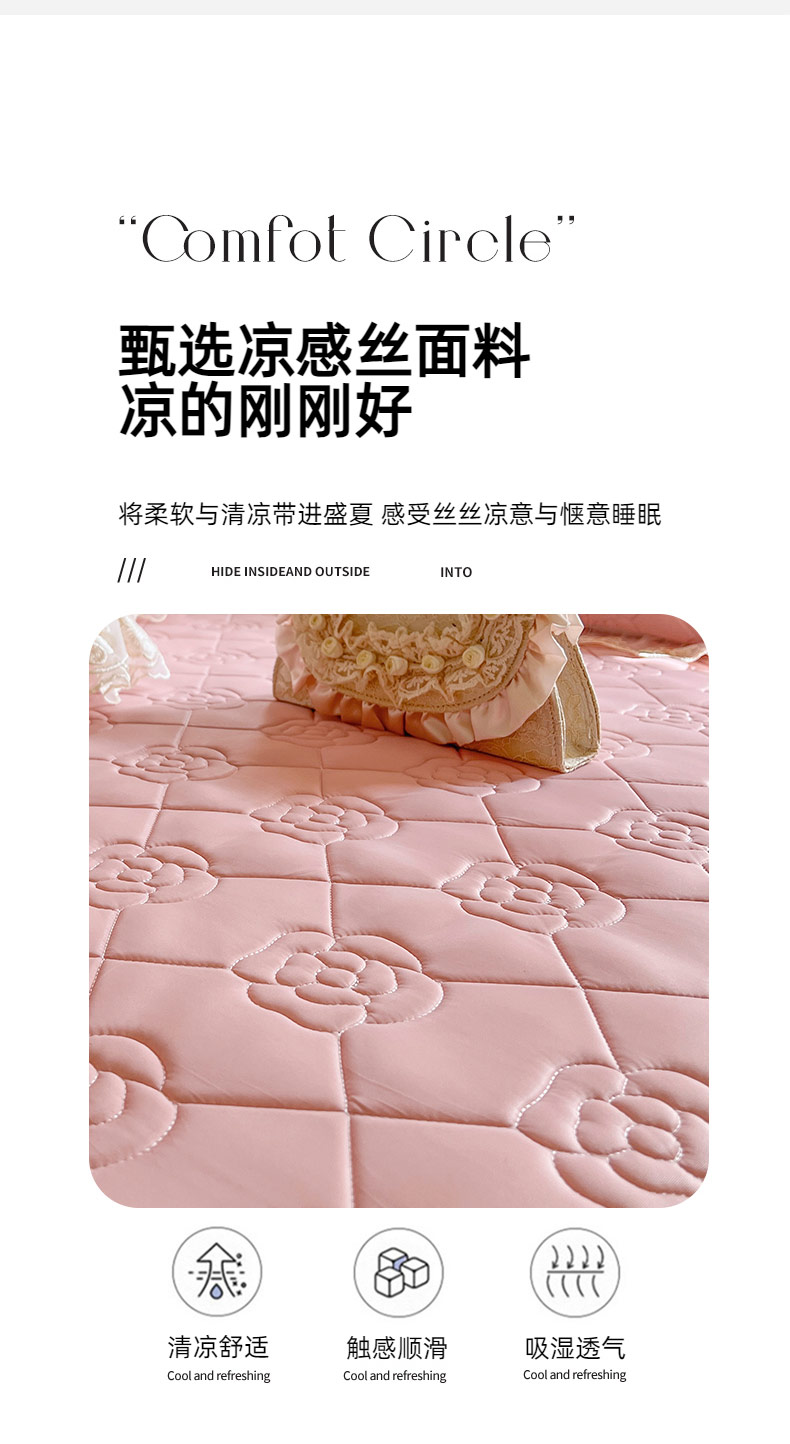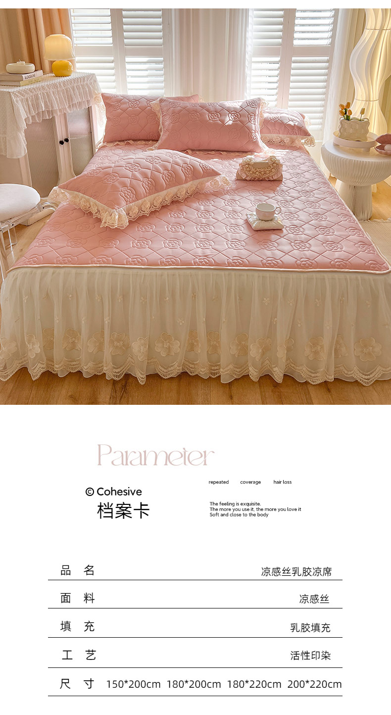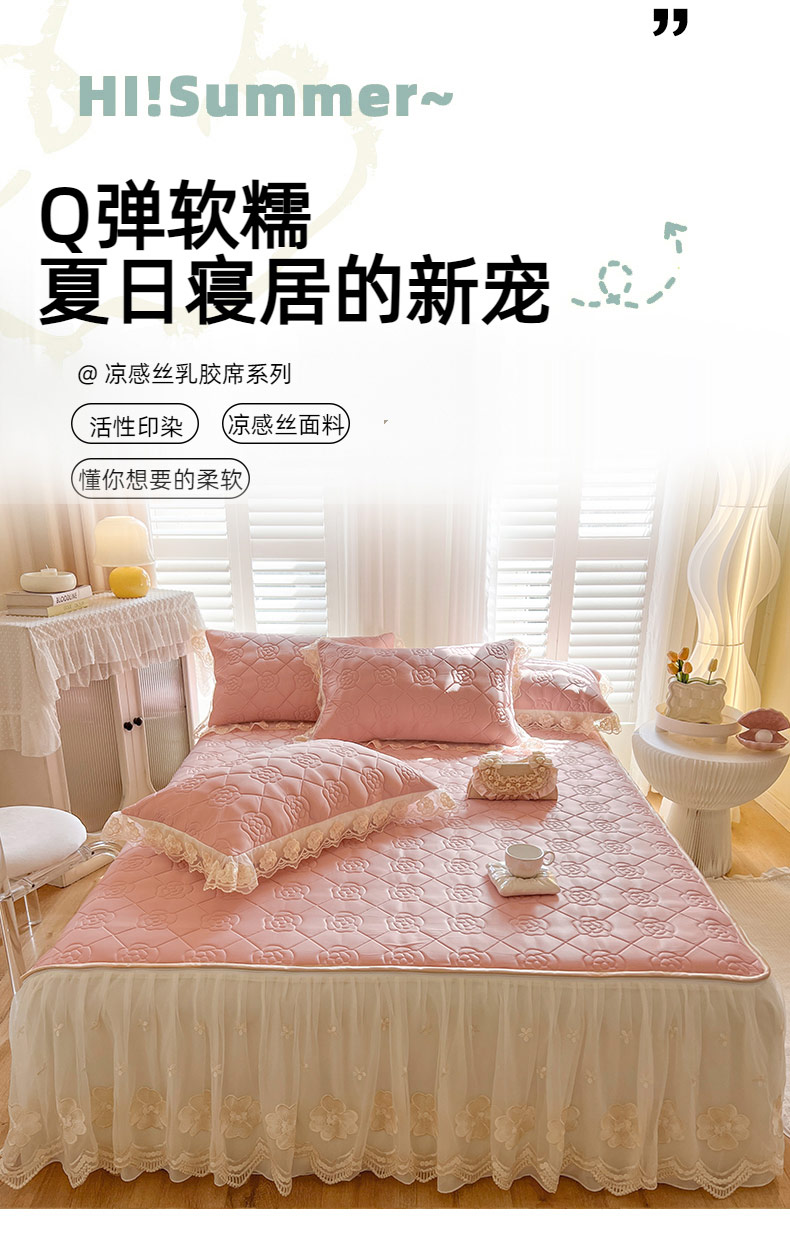 (总)麒豆豆2025新款凉感丝床笠式床裙乳胶凉席,白,粉,灰,蓝,绿,驼,玉,紫