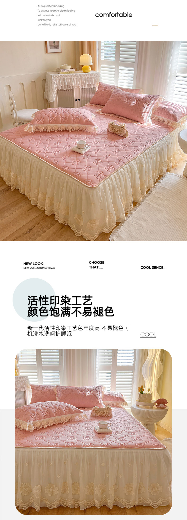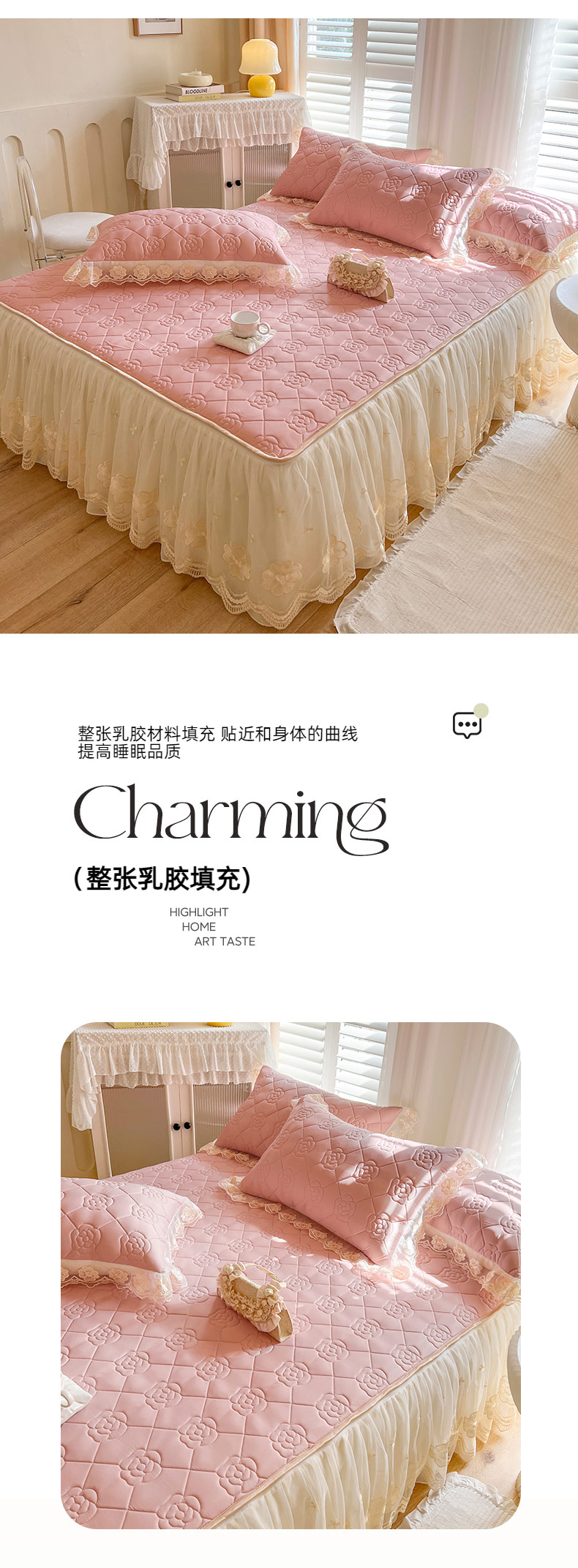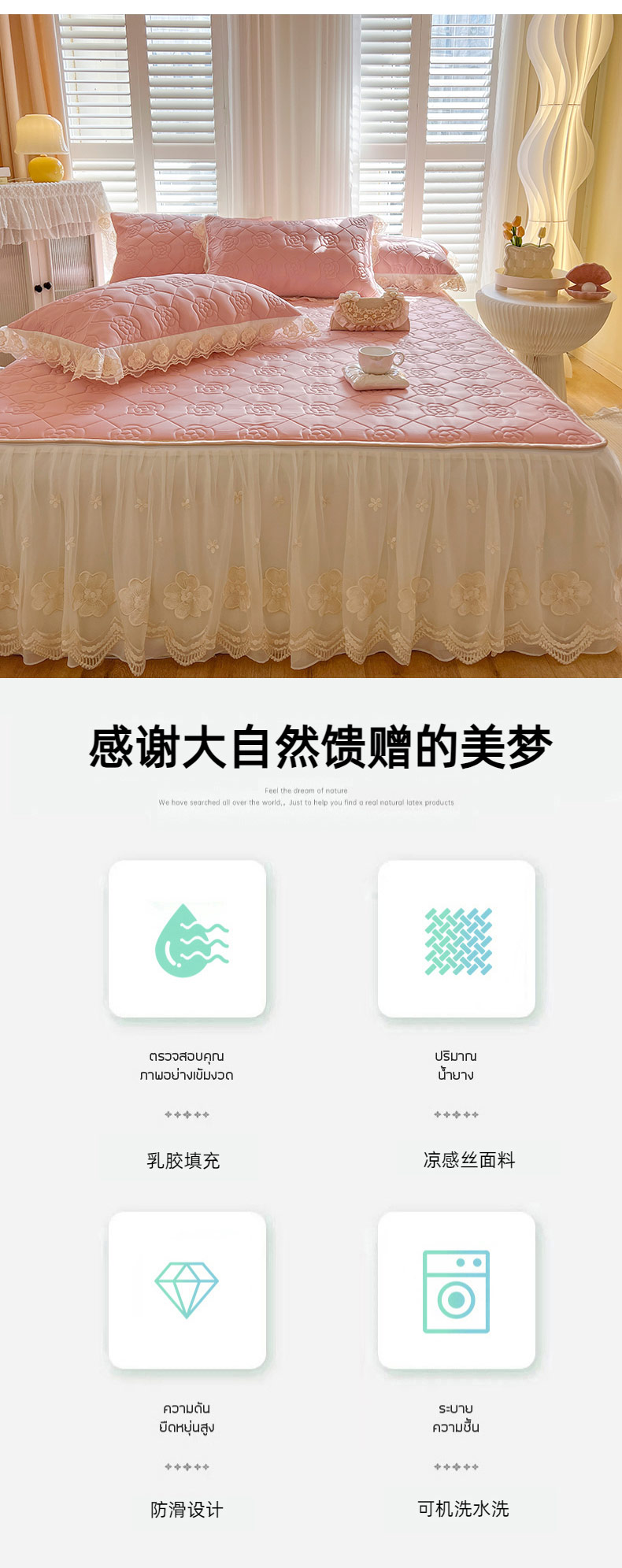 (总)麒豆豆2025新款凉感丝床笠式床裙乳胶凉席,白,粉,灰,蓝,绿,驼,玉,紫