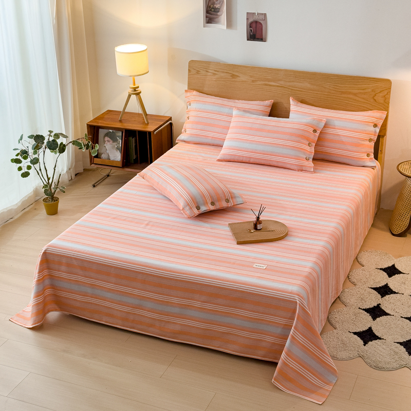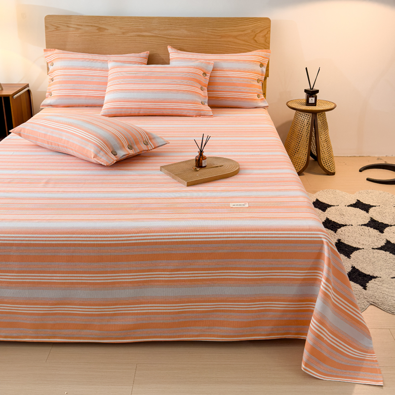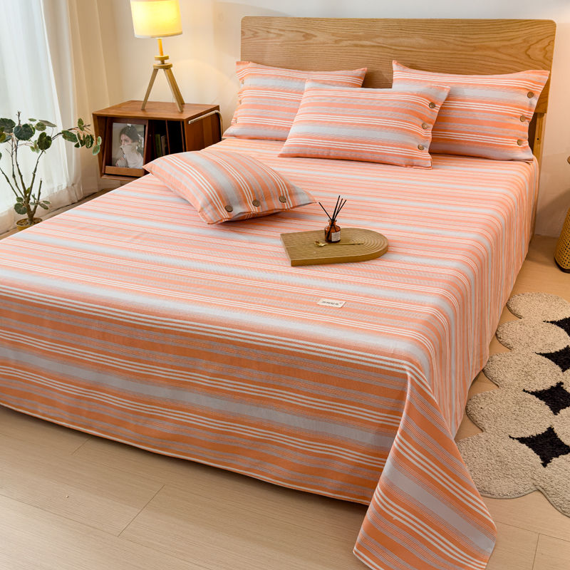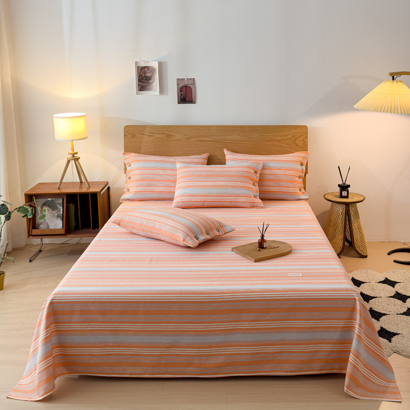 商品名称:仟网汇 2024新款无印纽扣原棉老粗布三件套 条纹橘