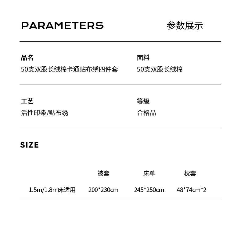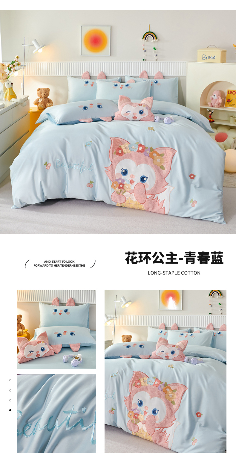 商品名称:(汇总)紫桐 2025新款50s双股100支长绒棉四件套三件套卡通贴布绣四件套(控价420)