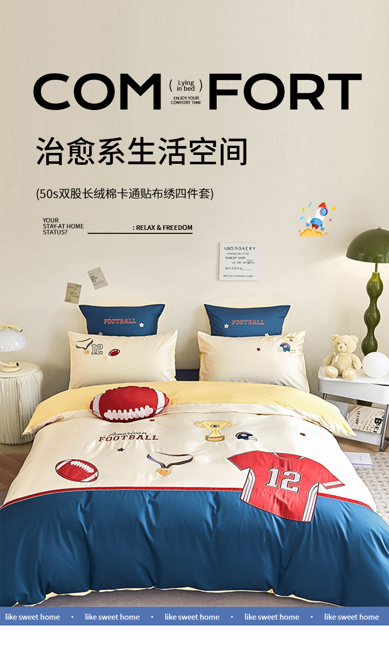 (汇总)紫桐 2025新款50s双股100支长绒棉四件套三件套卡通贴布绣四件套(控价420),橄榄少年,卡丁车,漫游宇宙,星际太空-宾利蓝,星际太空-湖水绿