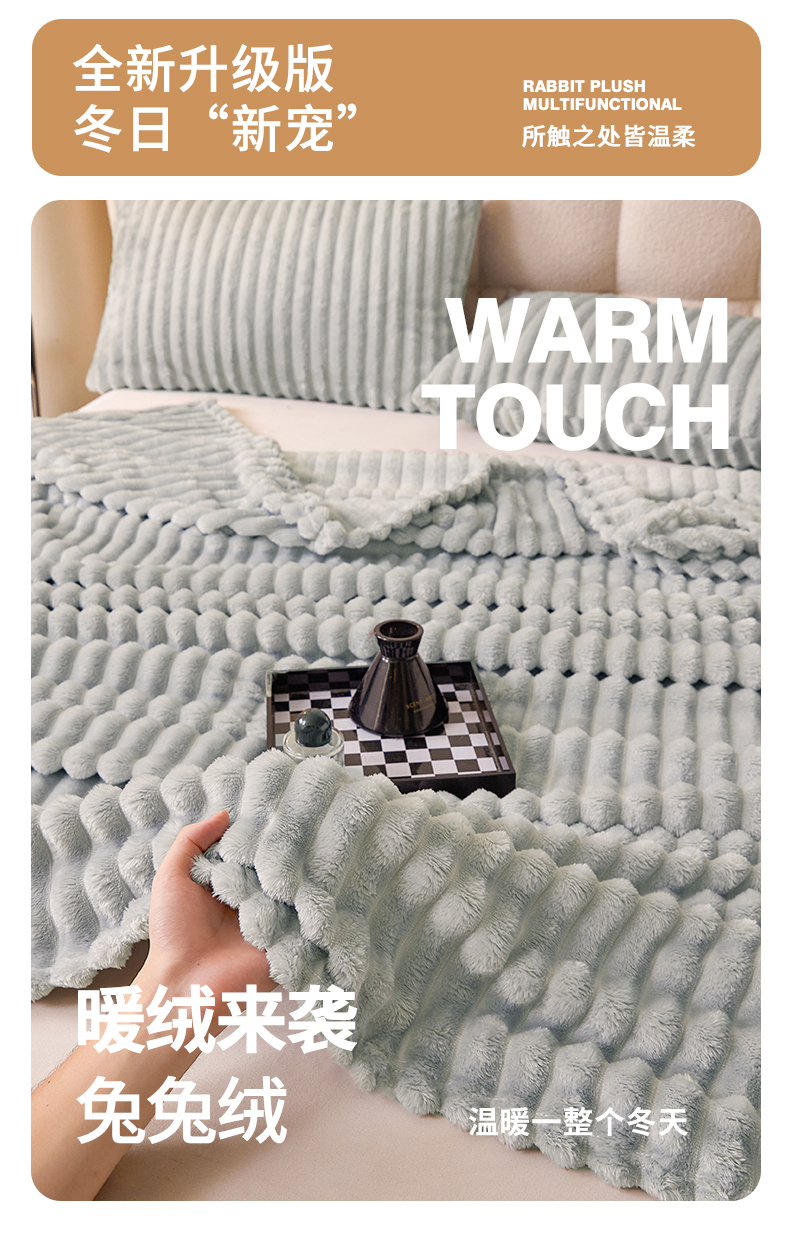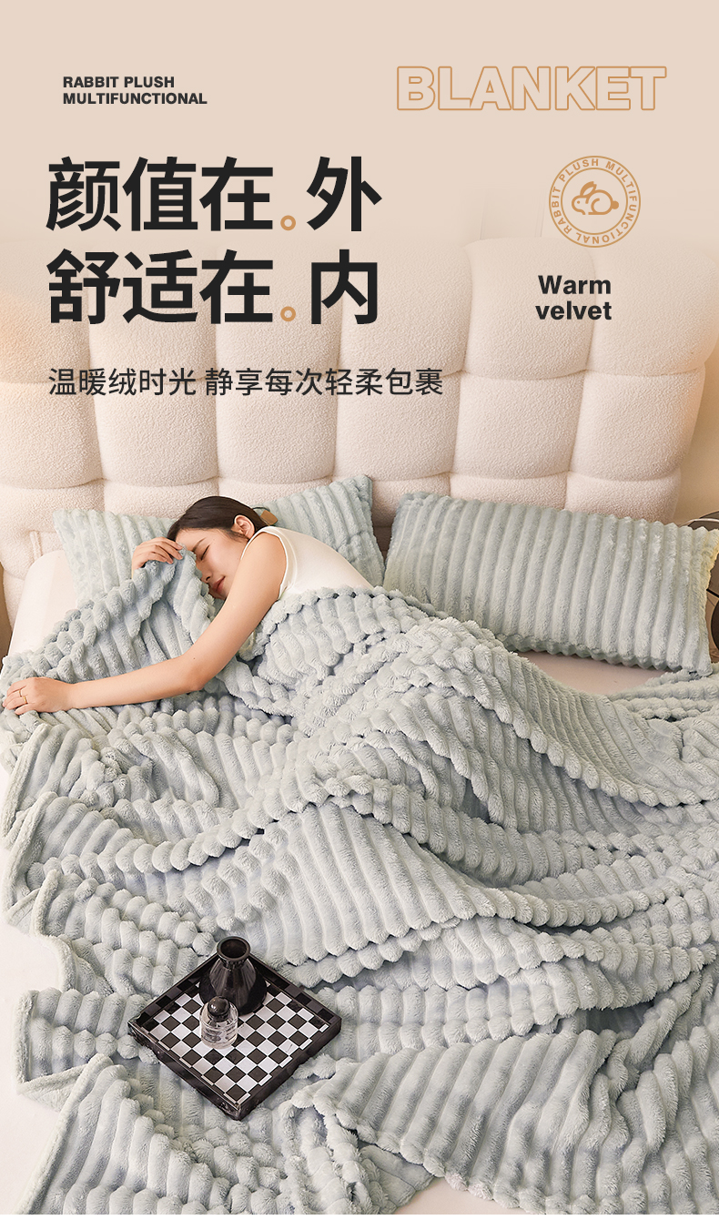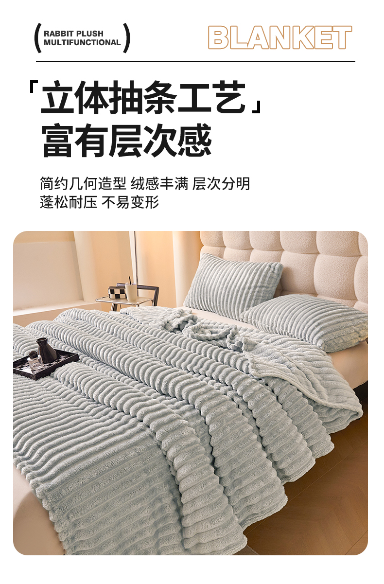 (总)梵心家纺 跨境兔毛绒抽条毛毯高克重法兰绒毛毯跨境外贸直播,淡然米,橄榄绿,梦幻浅灰,晴空蓝,心悦粉,星辰灰,卡其