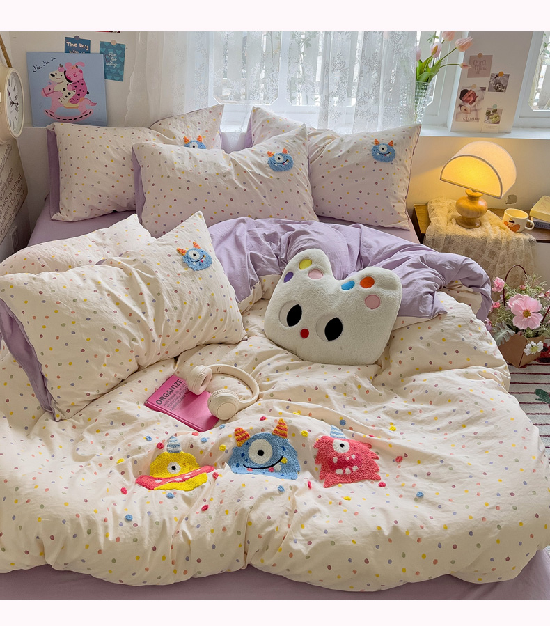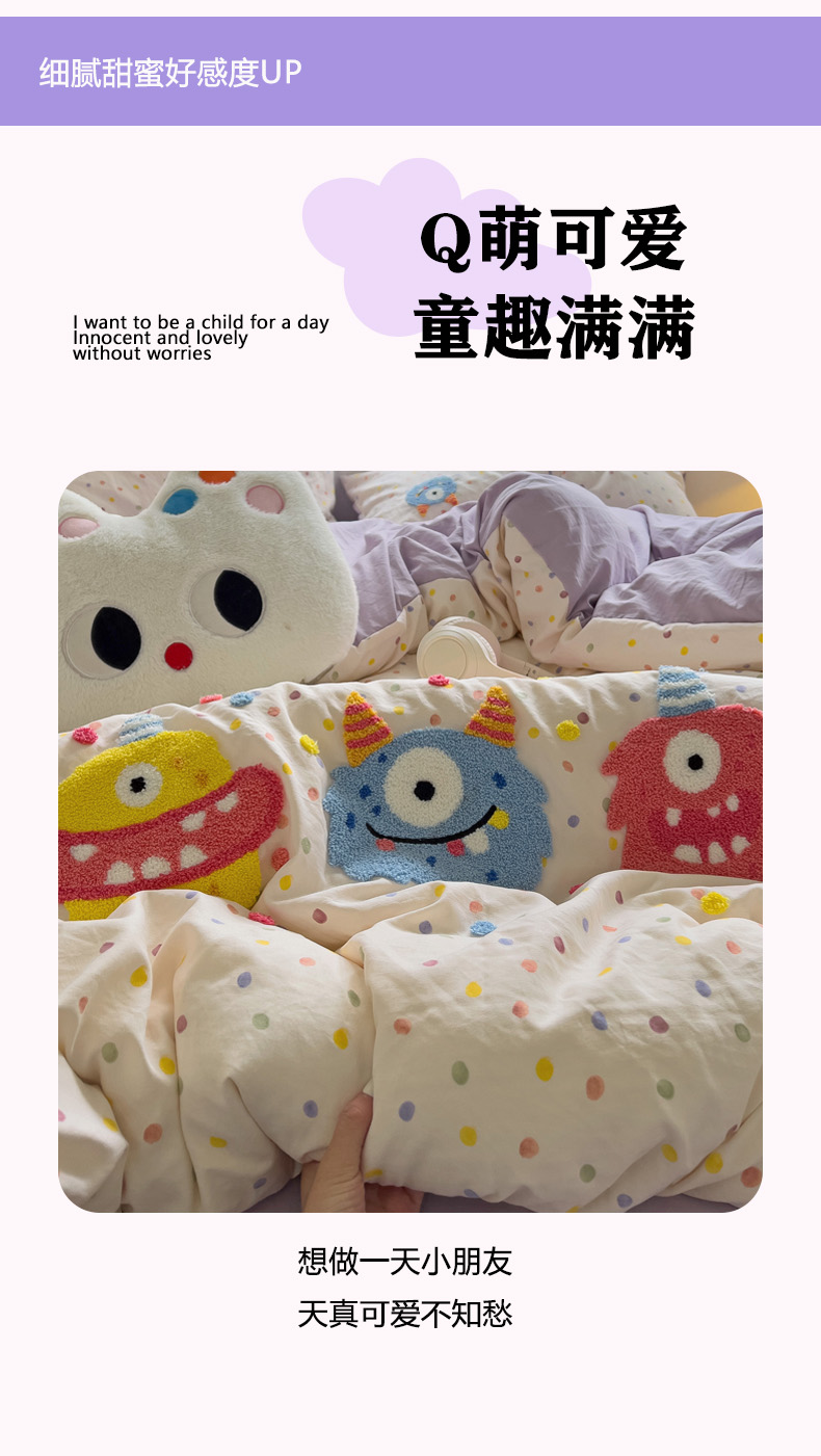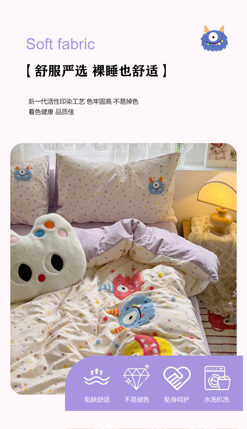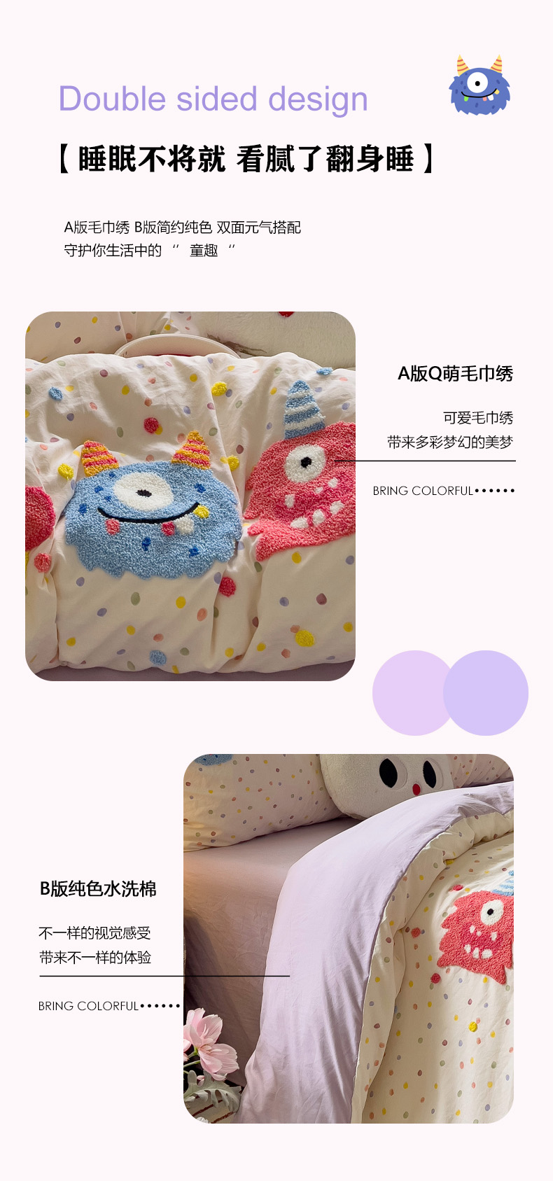 当前位置: 91家纺网 > 商品网购 > 床品套件 > 四件套 > 毛巾绣四件套 > 曼谷家纺 2025新款软糯毛巾绣水洗棉四件套-【买家秀联系微信】专属版权,质检报告 三小怪-波点紫