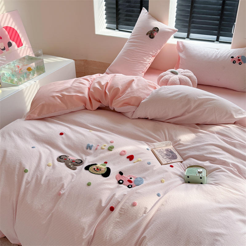 暖生活 2025新款全棉水洗棉毛巾绣四件套 波点小丑