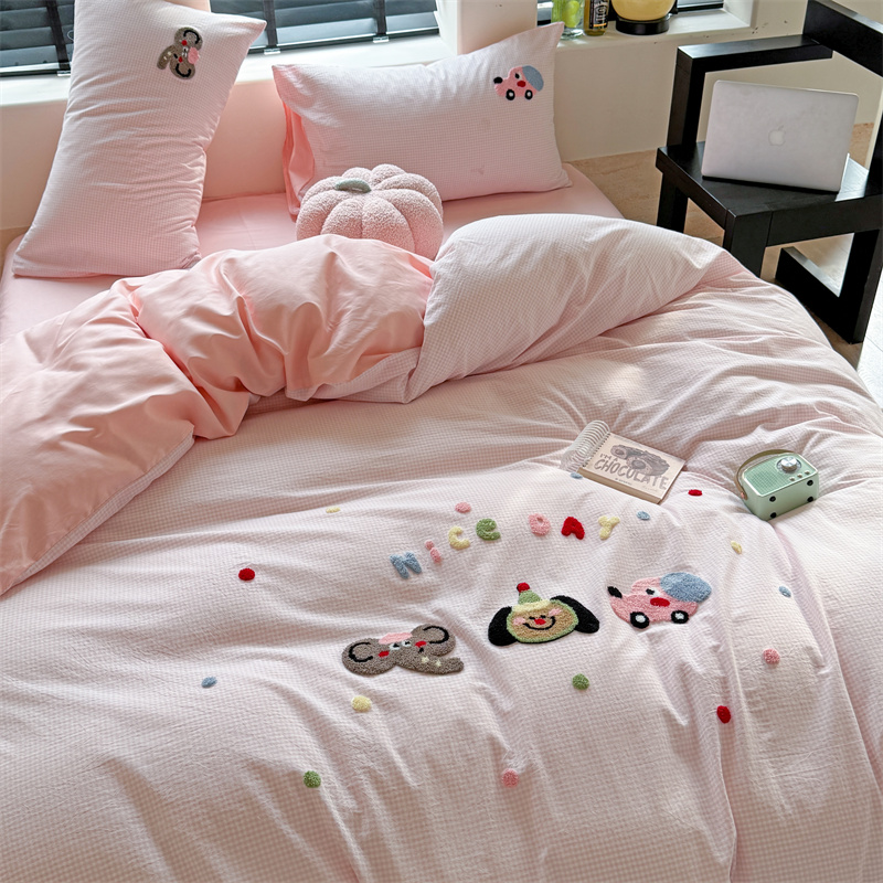 (总)暖生活 2025新款兔绒贴布绣牛奶绒套件四件套(会员-5),小泰迪,红围巾小狗,线团小猫,泳圈企鹅