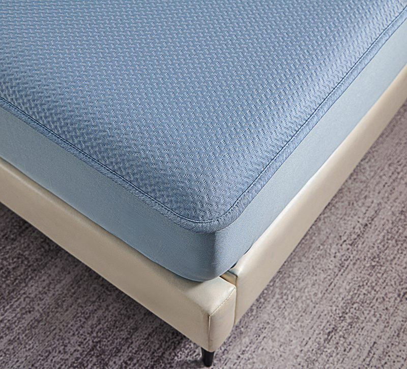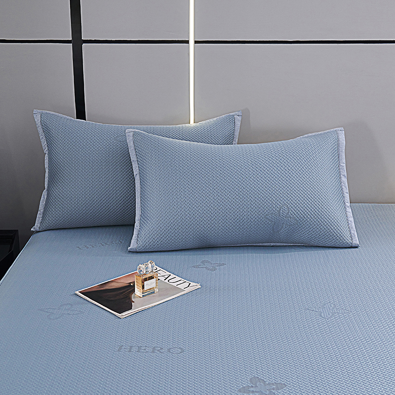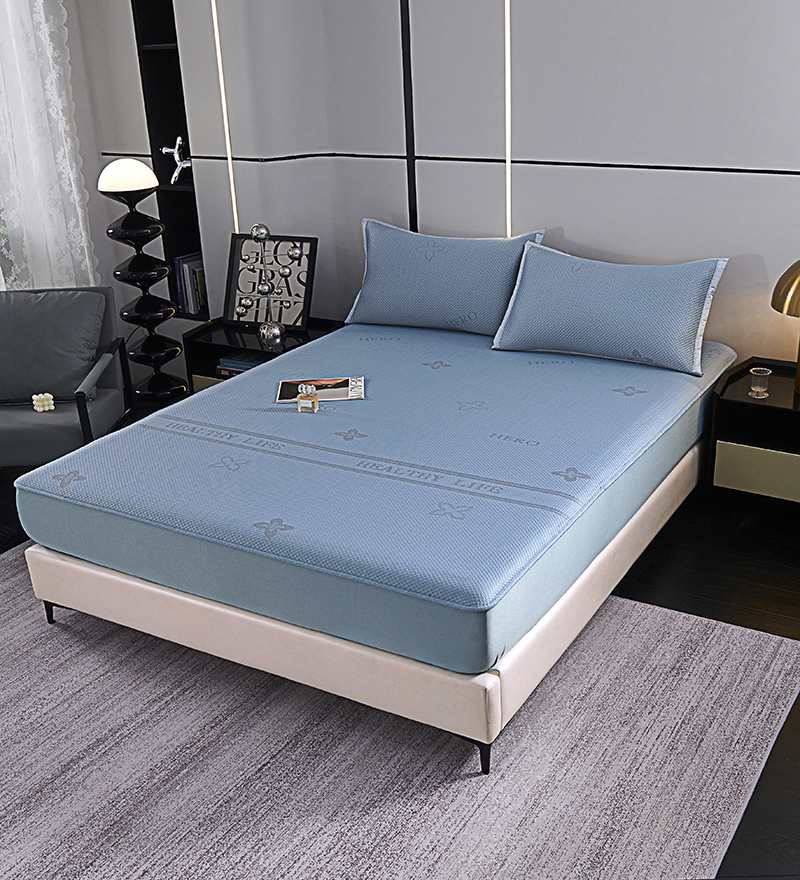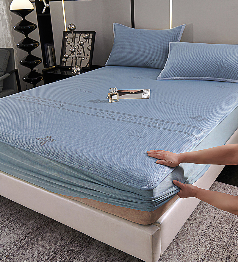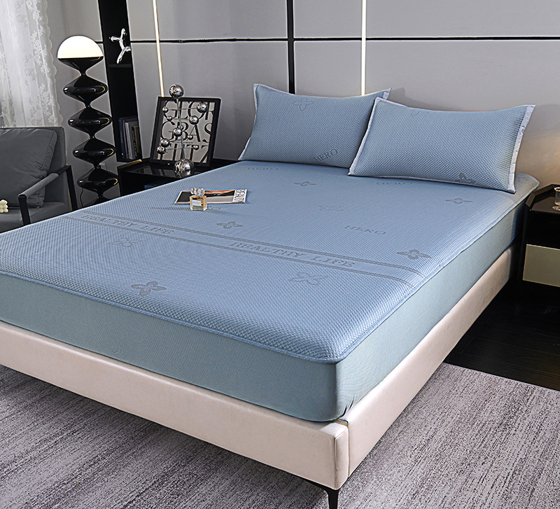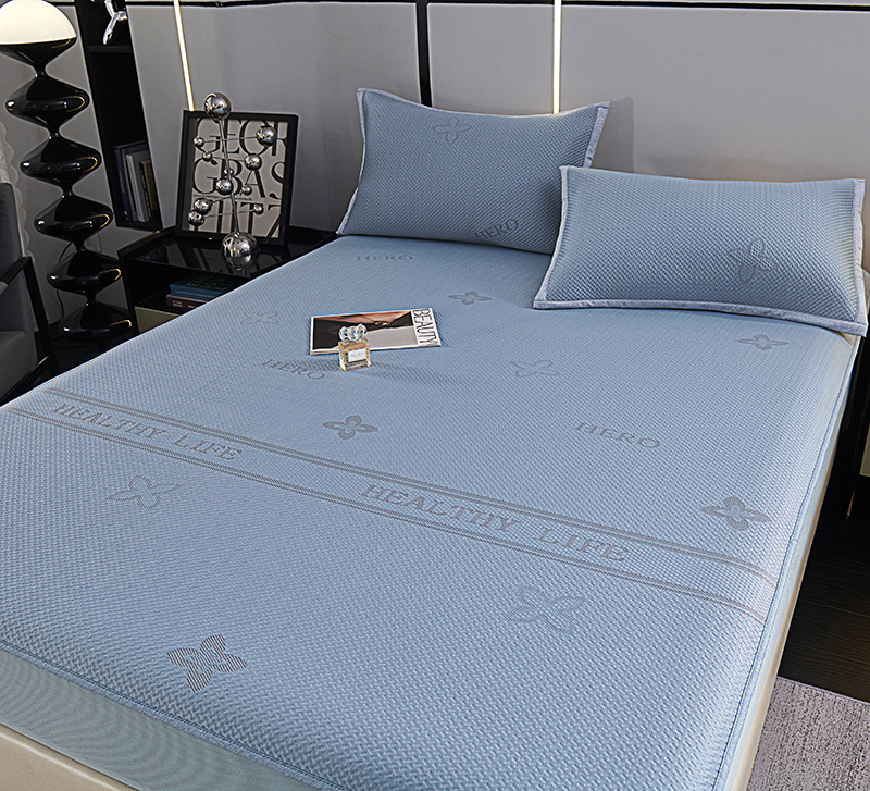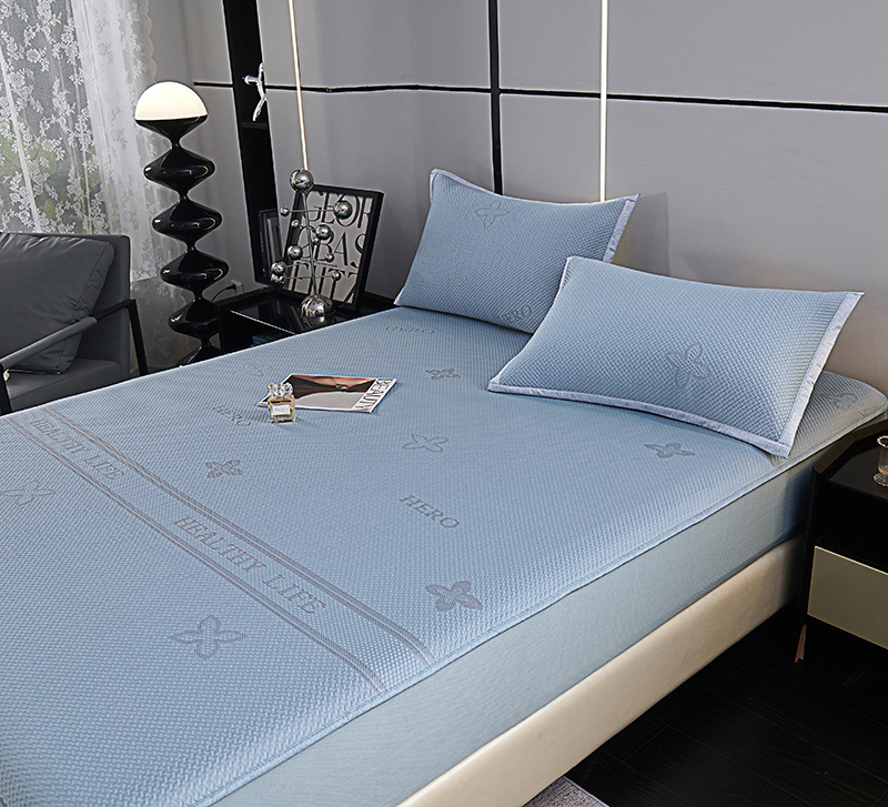 青雅席业 2025年新款7A抗菌母婴级纯乙纶PE刺绣凉感丝豆豆席床笠款 四叶花-蓝
