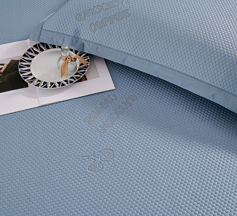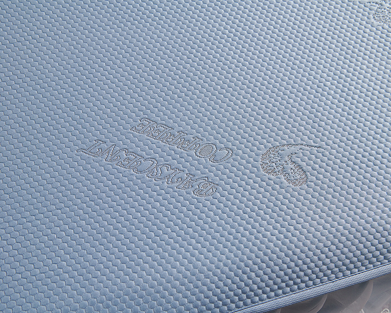 青雅席业 2025新款7A抗菌母婴级纯乙纶PE刺绣凉感丝豆豆席 床裙款 字母爱心-蓝