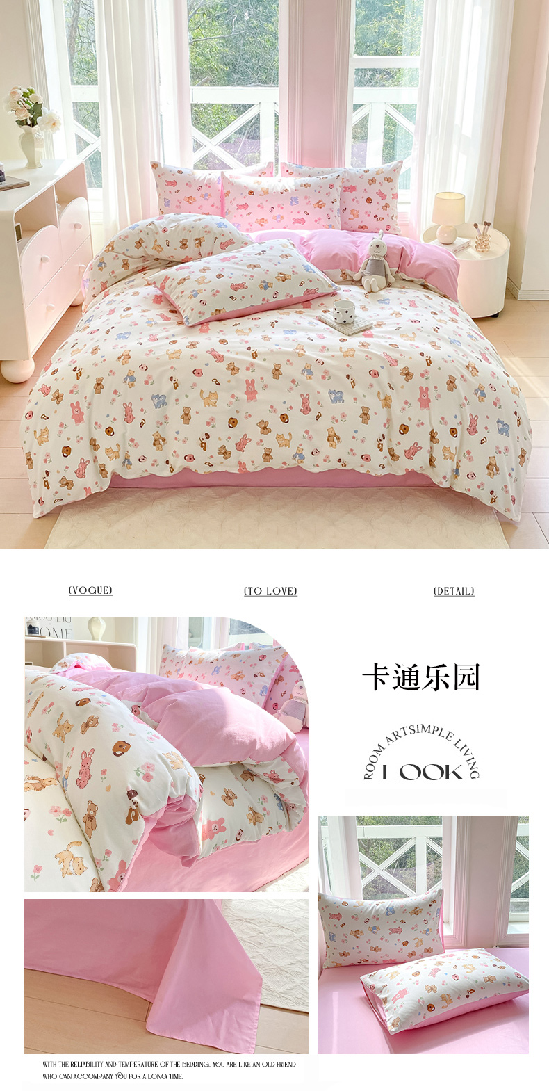 商品名称:念家居 2025新款直播爆款三件套印花小清新13070全棉四件套 卡通乐园