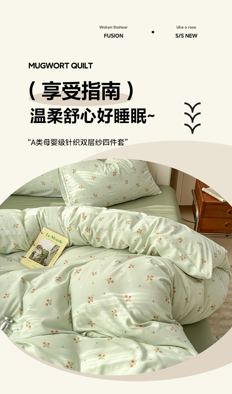 当前位置: 91家纺网 > 商品网购 > 床品套件 > 四件套 > 针织棉四件套 > 冕悠家纺 2025新款热款A类高克重针织双层纱四件套系列 (提供买家秀) 清新奶绿