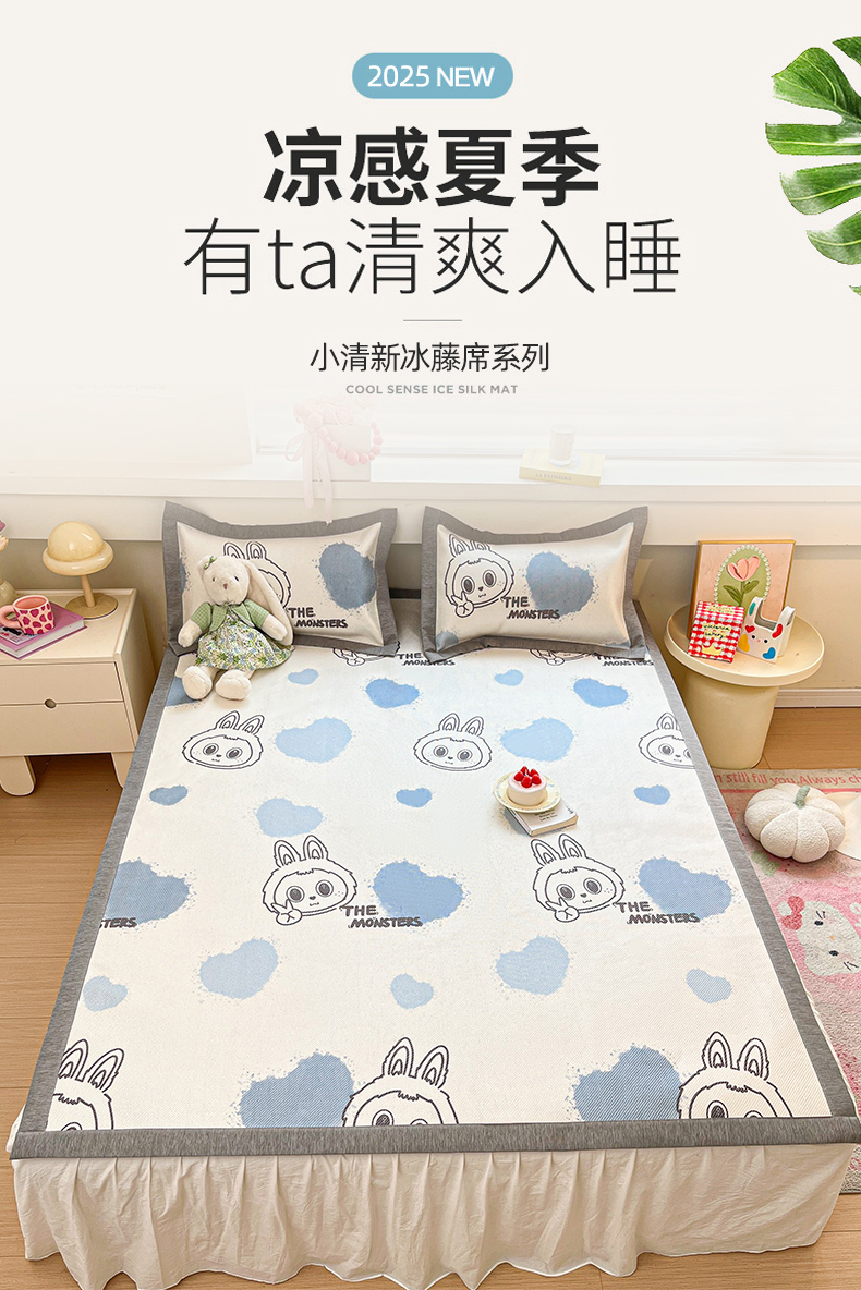 迪乐妮 2025新款印花真冰藤冰凉席 小怪兽