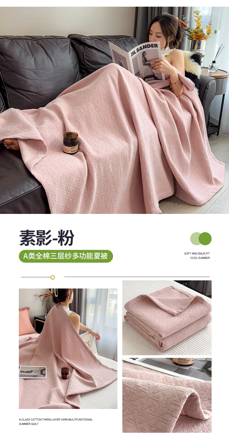 商品名称:世纪绒品 2025新款A类全棉纯棉三层纱多功能毛巾被盖毯床单夏被夏凉被空调被 素影-浅咖
