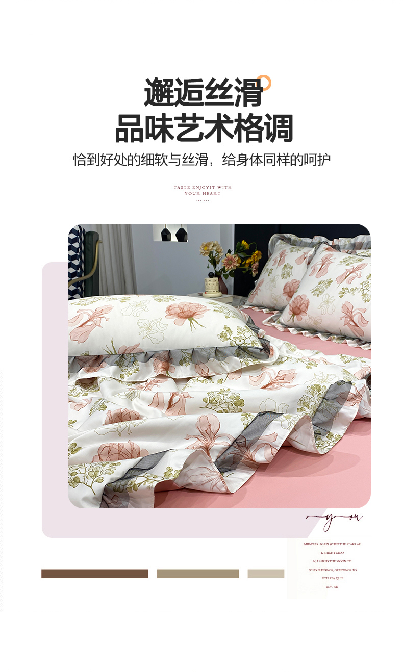 宇彬家纺 2025直播新品水洗真丝冰丝双层花边天丝夏被夏天空调被夏凉被可水洗单夏被枕套三件套床单夏被四件套 幽梦(黄绿)