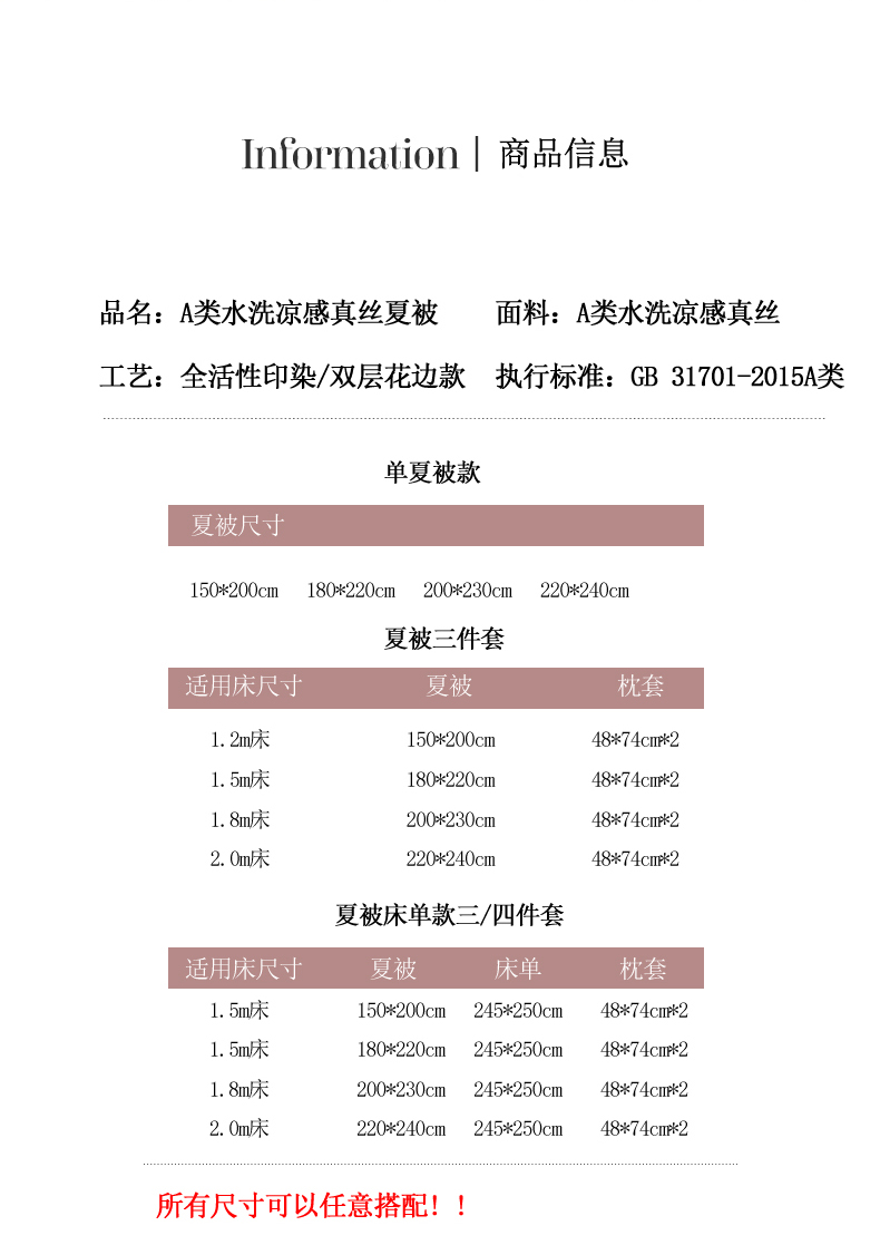 • 适用季节: 空调被/夏凉被