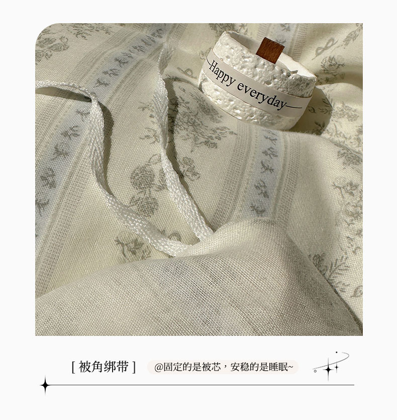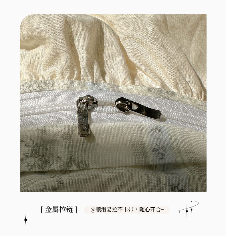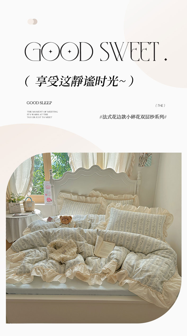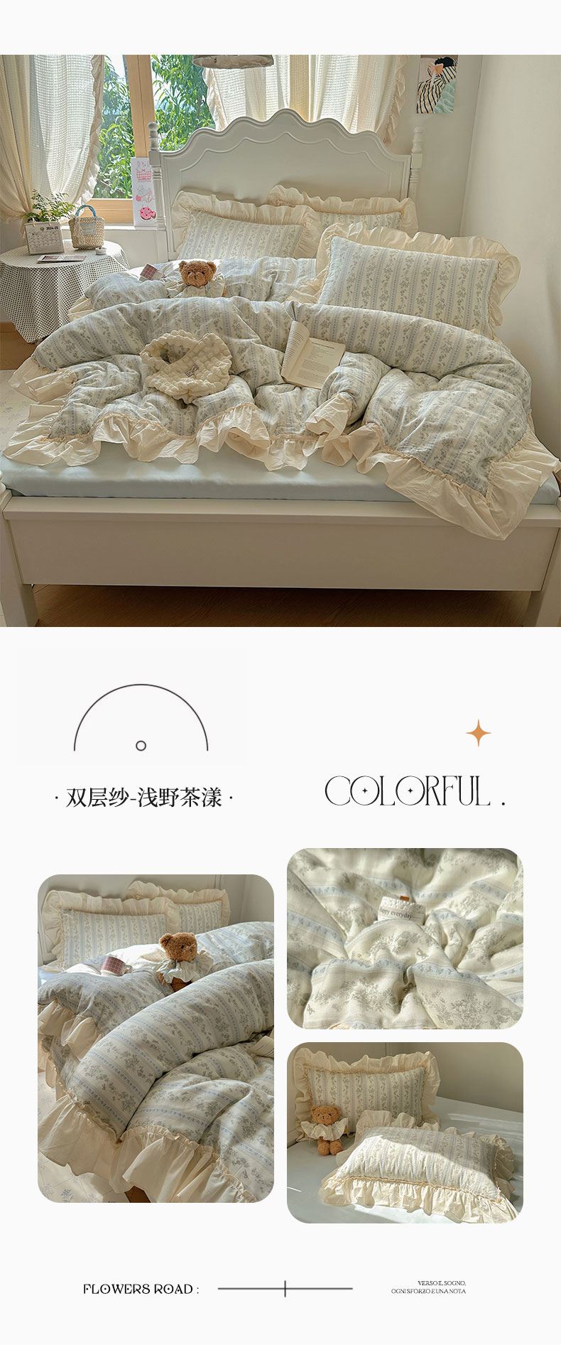 当前位置: 91家纺网 > 商品网购 > 床品套件 > 四件套 > 双层纱四件套 > 六巷胡同2025新款法式小碎花a类全棉双层纱花边款四件套 双层纱-浅野茶漾