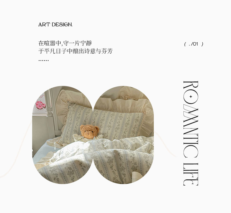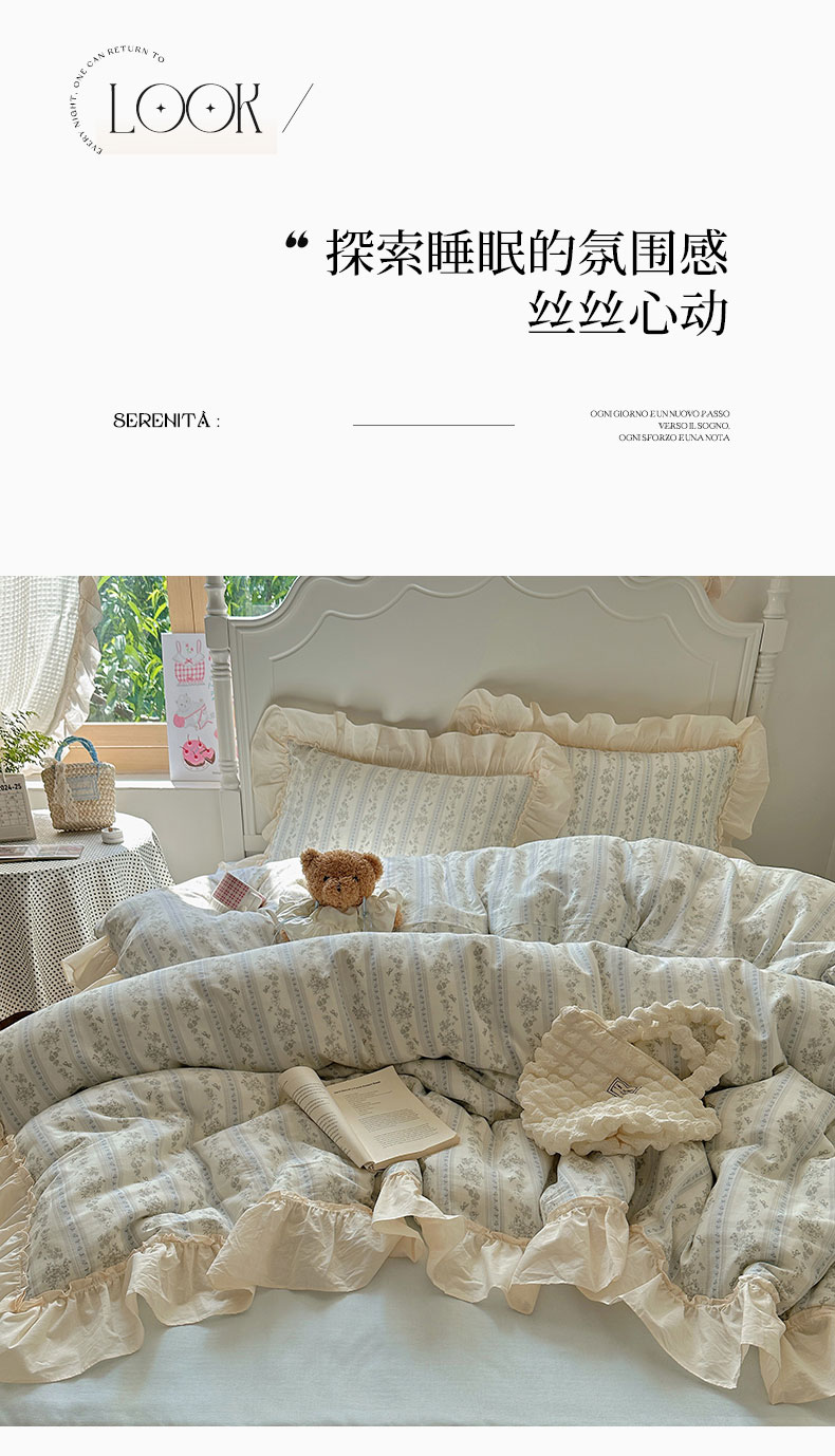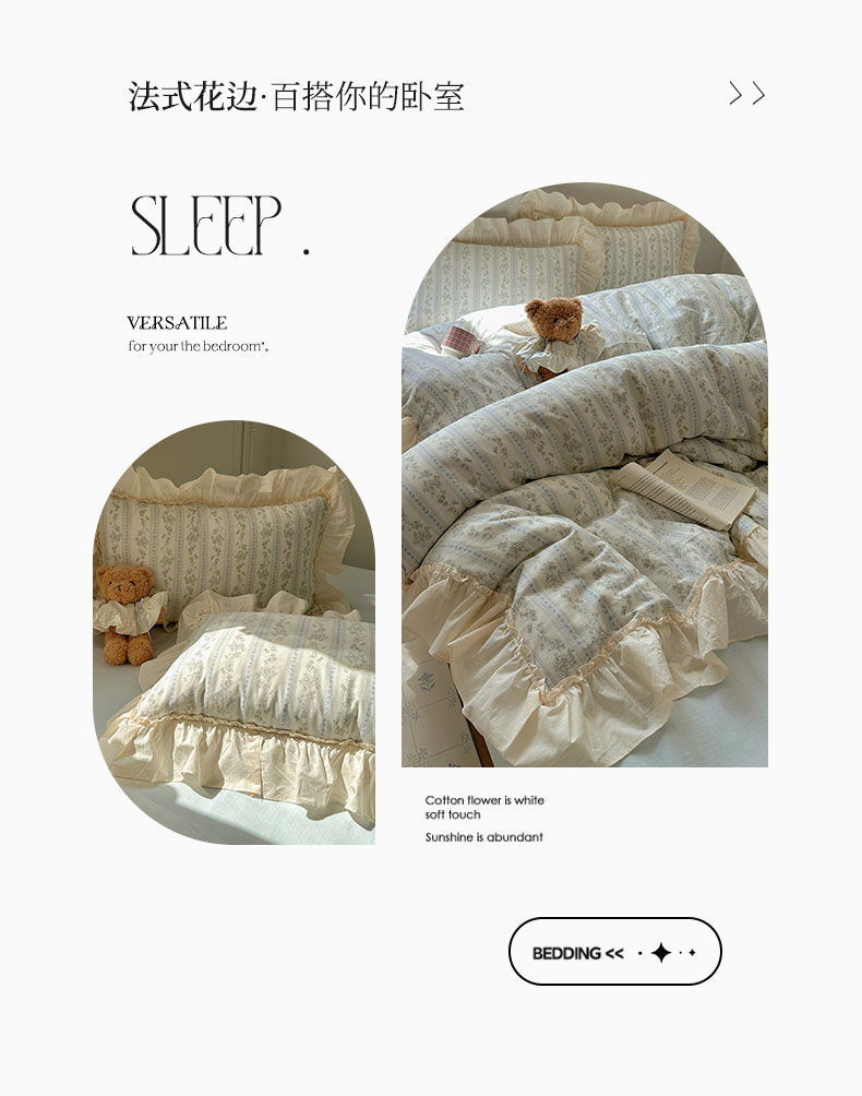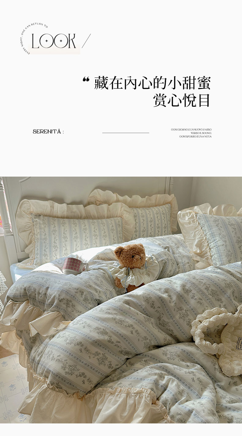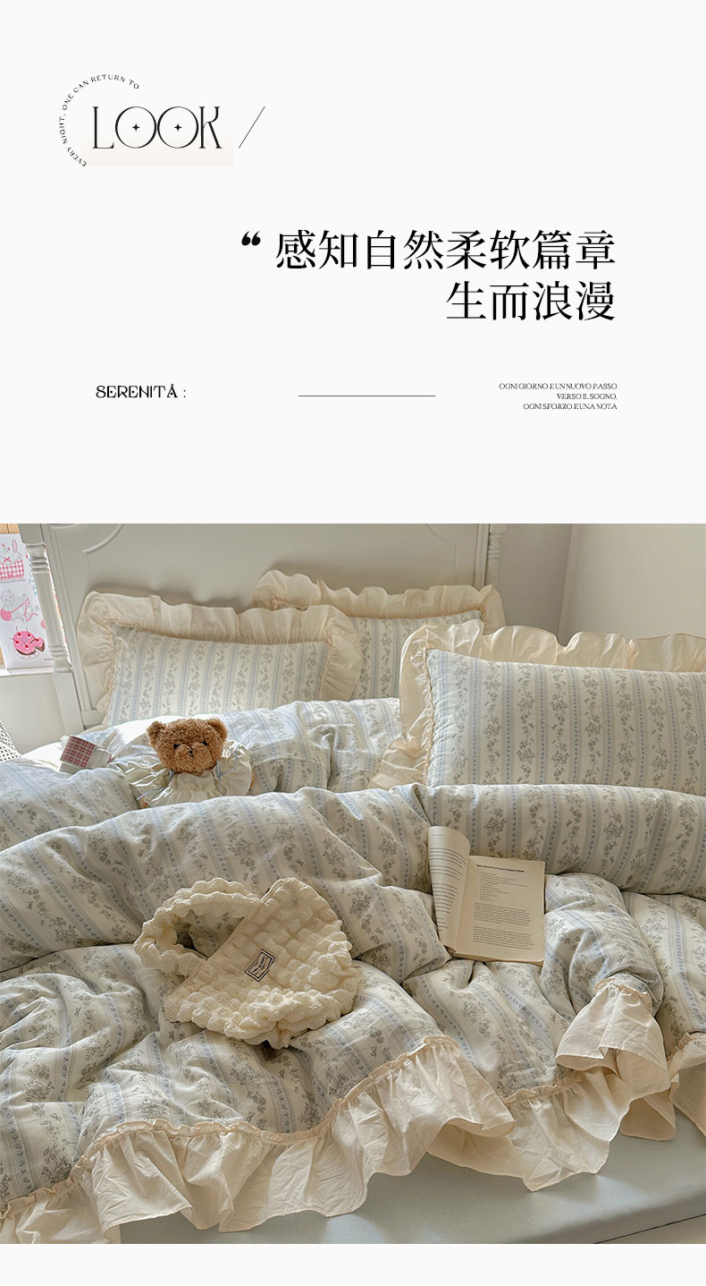 当前位置: 91家纺网 > 商品网购 > 床品套件 > 四件套 > 双层纱四件套 > 六巷胡同2025新款法式小碎花a类全棉双层纱花边款四件套 双层纱-浅野茶漾