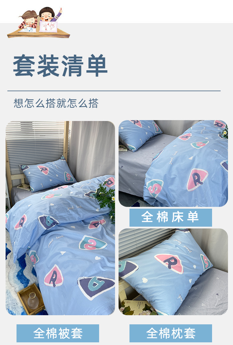 当前位置: 91家纺网 > 商品网购 > 床品套件 > 三件套 > 云梦13372全棉学生宿舍纯棉三六件套全棉三件套源头工厂常年有货 星月童话